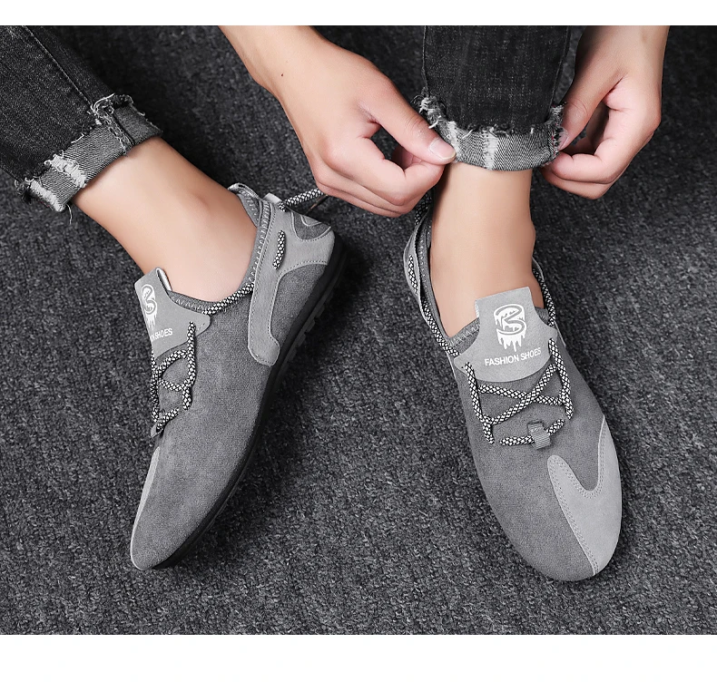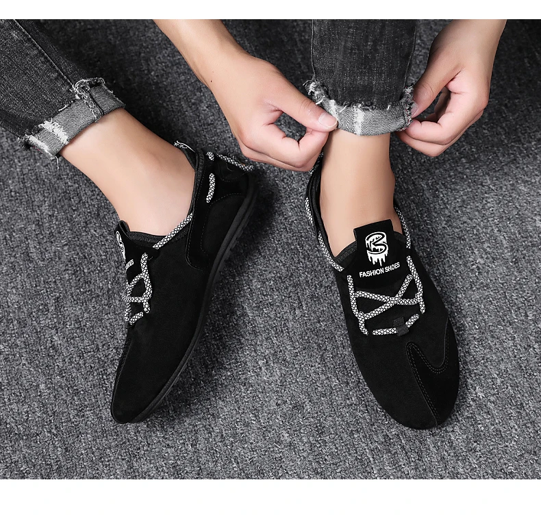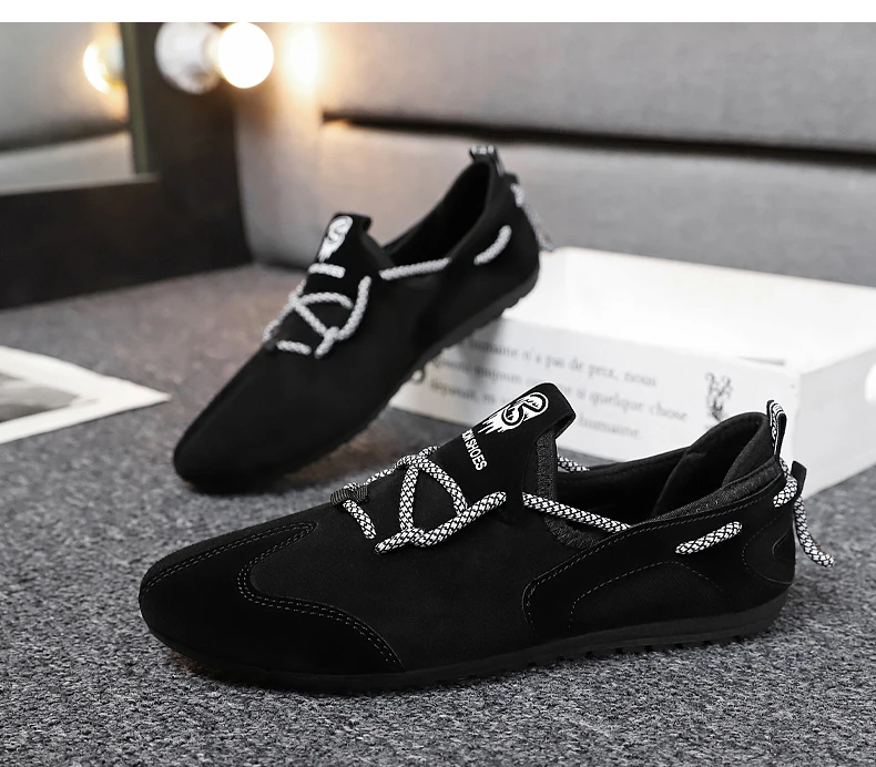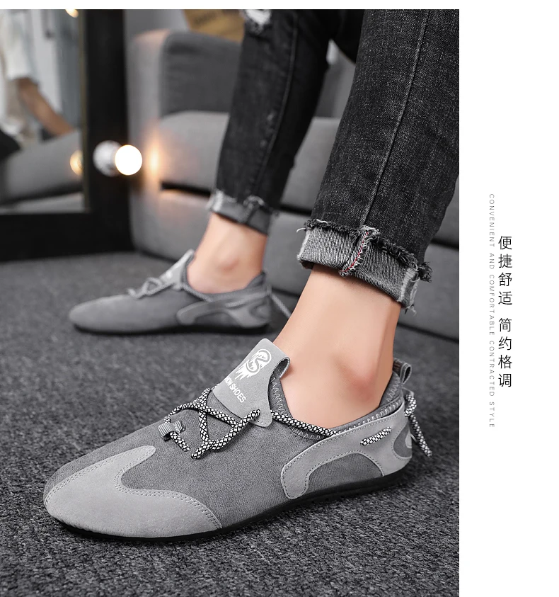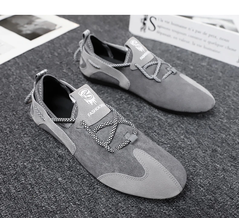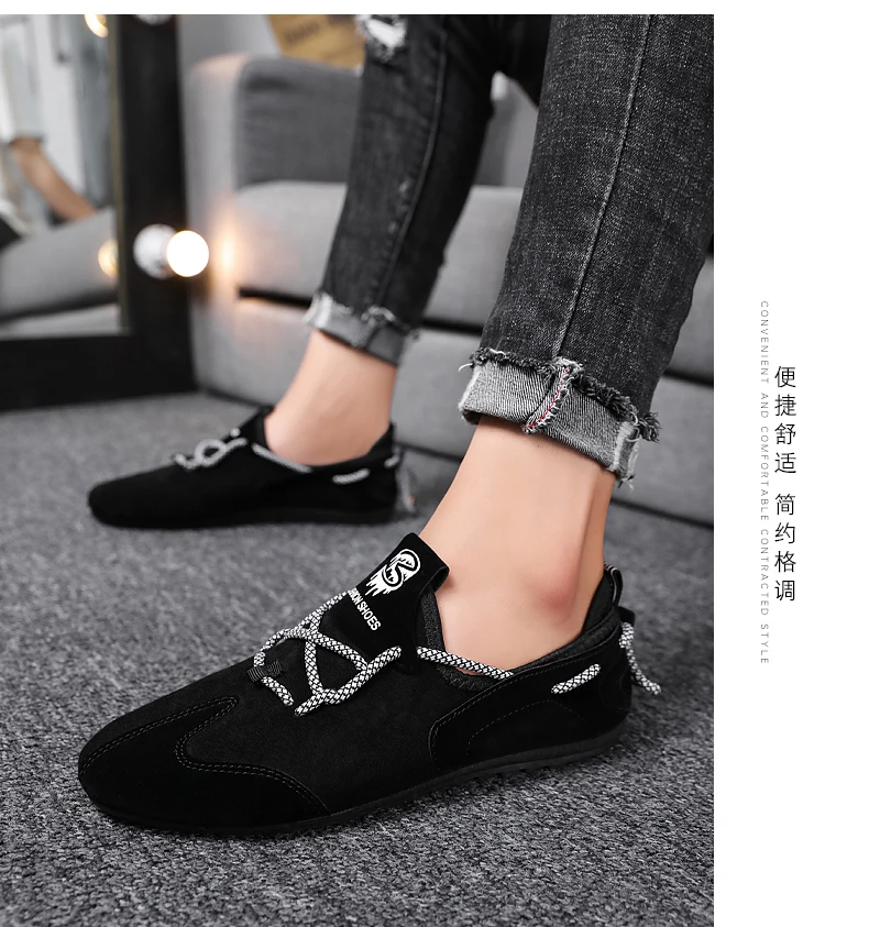Slip on Shoes Men High Quality Spring Summer Men Casual Shoes Black Gray Flock Fashion Sneakers Youth Loafers Driving Moccasin