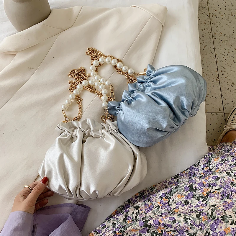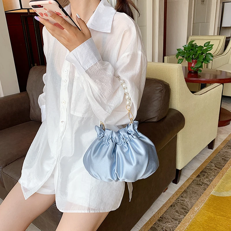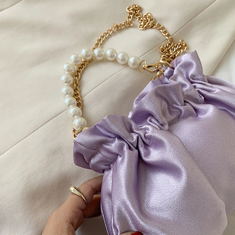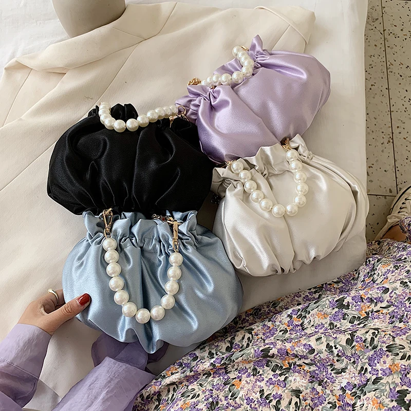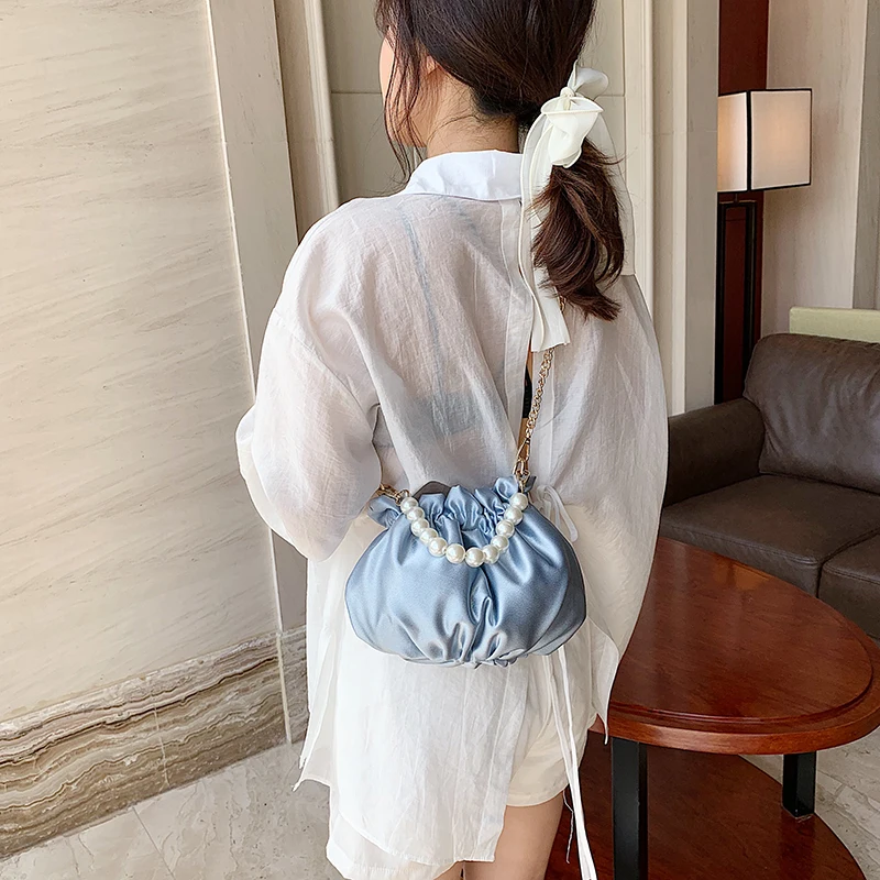 Small silk Drawstring Crossbody Bags For Women 2020 Elegant Bucket Bags Shoulder Handbags Female Travel Pearl Cross Body Bag