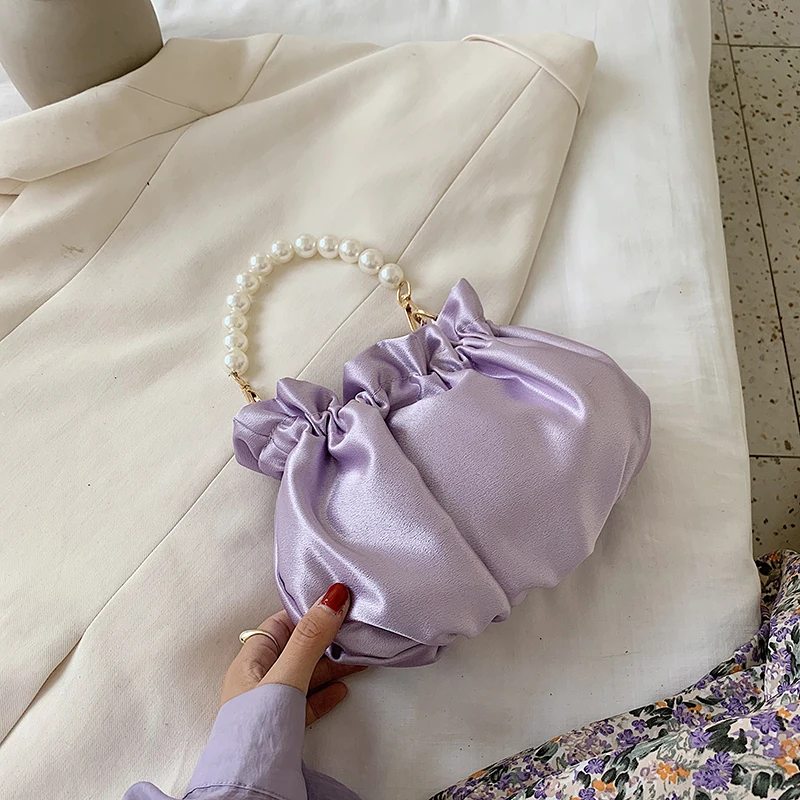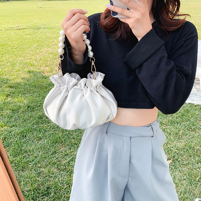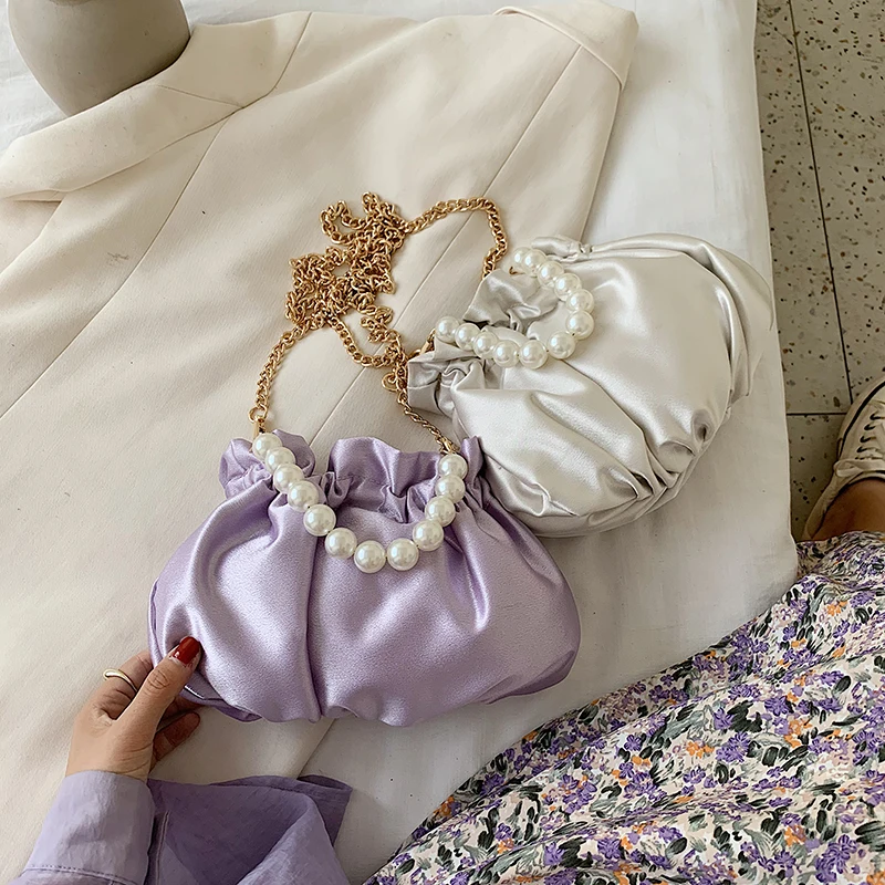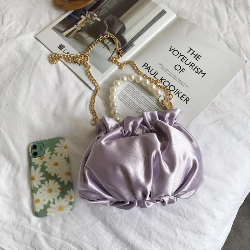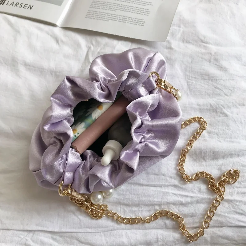 Small silk Drawstring Crossbody Bags For Women 2020 Elegant Bucket Bags Shoulder Handbags Female Travel Pearl Cross Body Bag