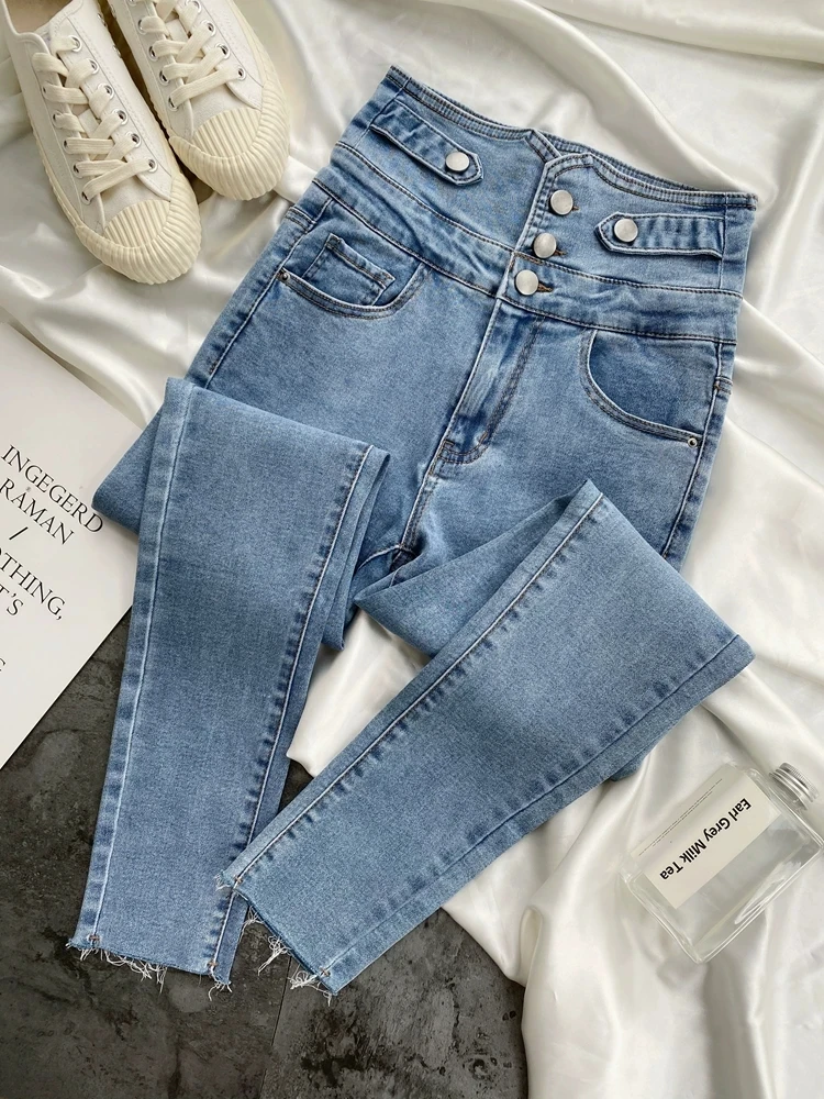 Soft High Waist Women'S Trousers Denim Streetwear Jean Vintage Girls Jeans Woman Pants Pencil Slim Stretch Femme Pantalon Mujer