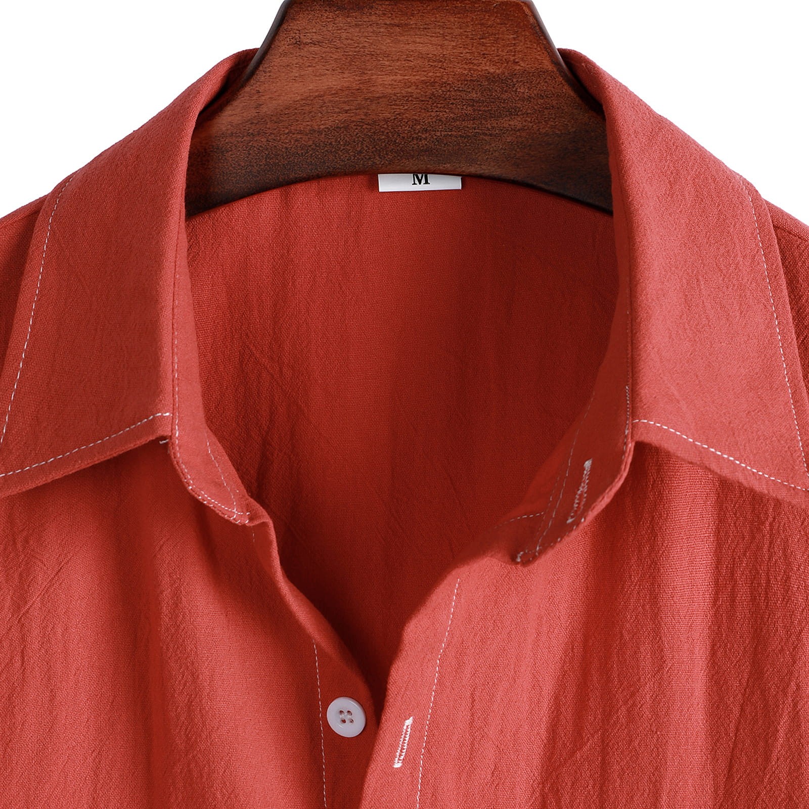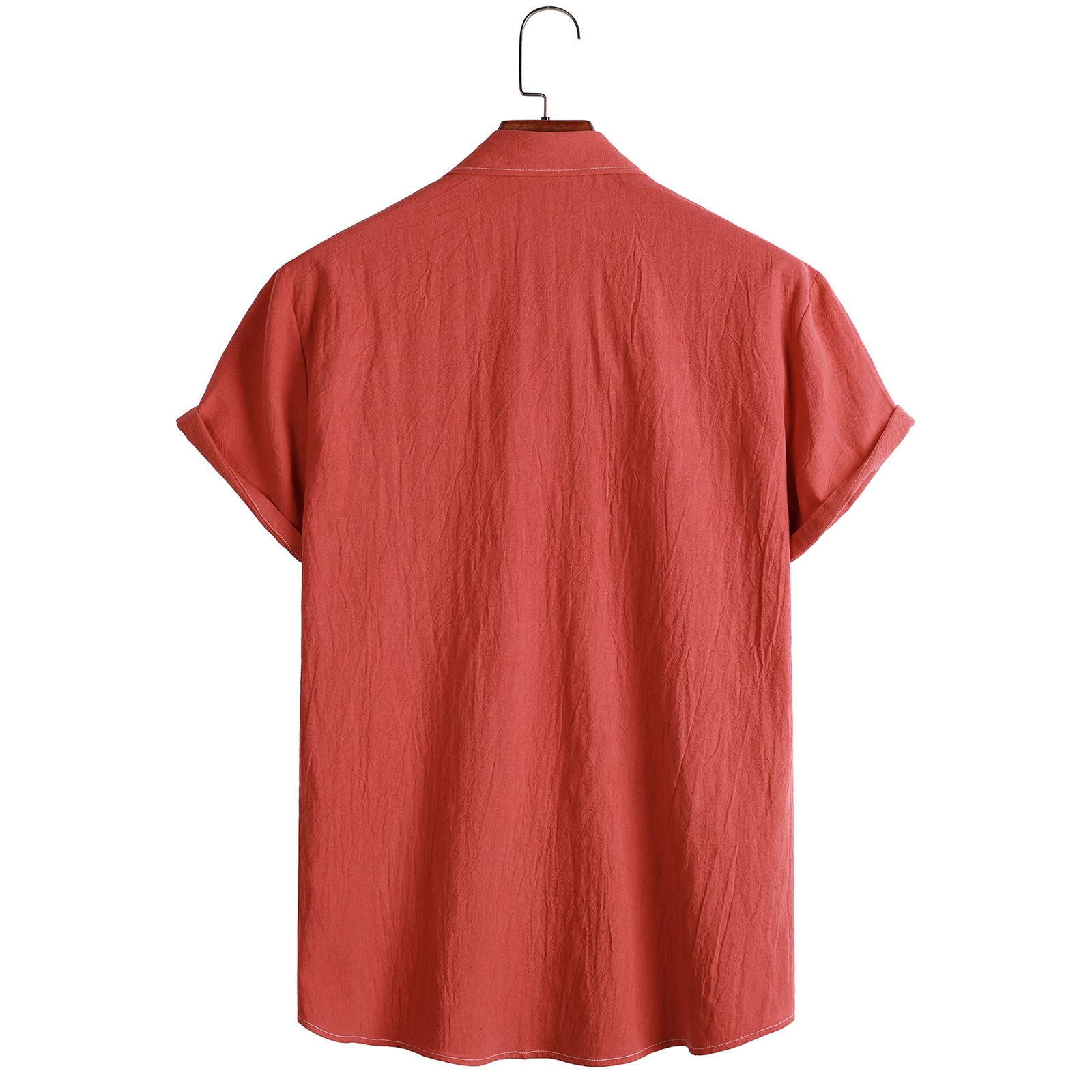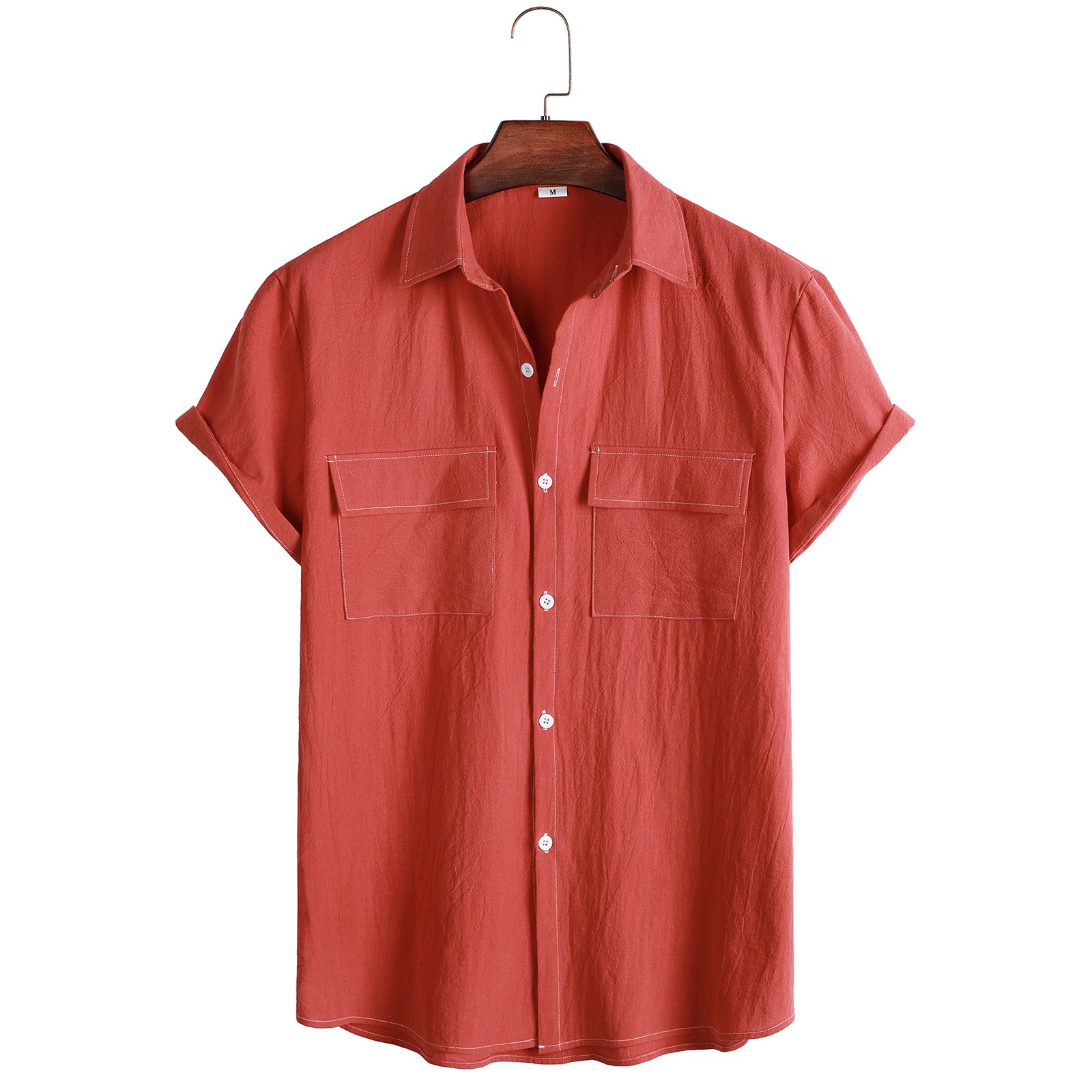 Men's Spring And Summer Solid Color Casual Lapel Large Size Beach Vacation Single-pocket Short-sleeved Shirt