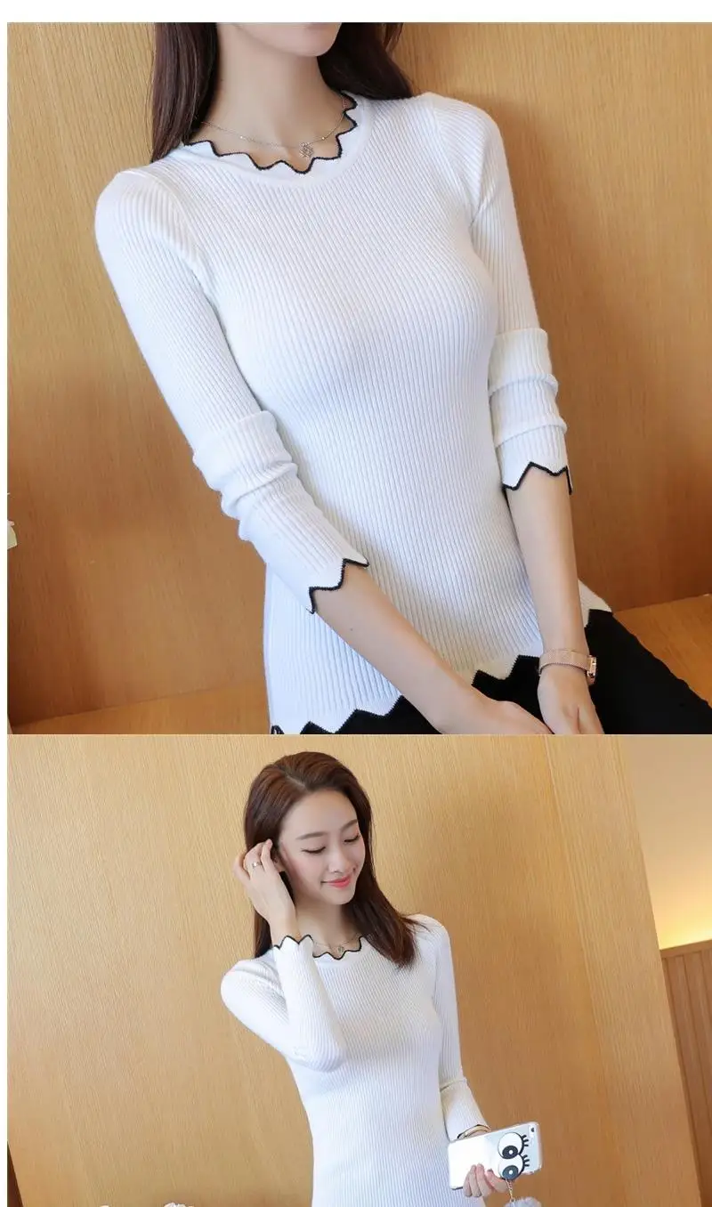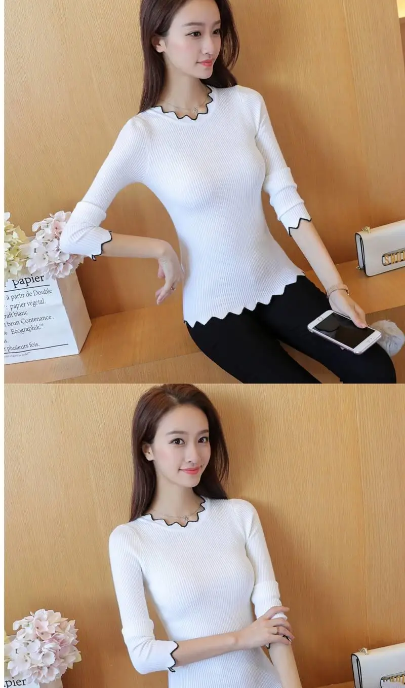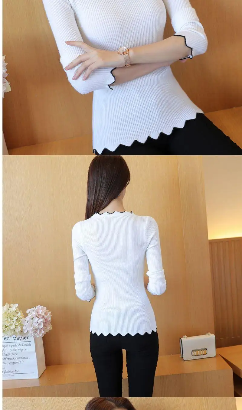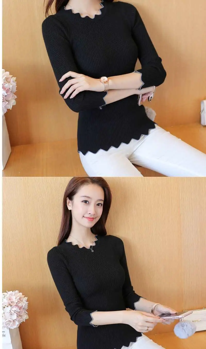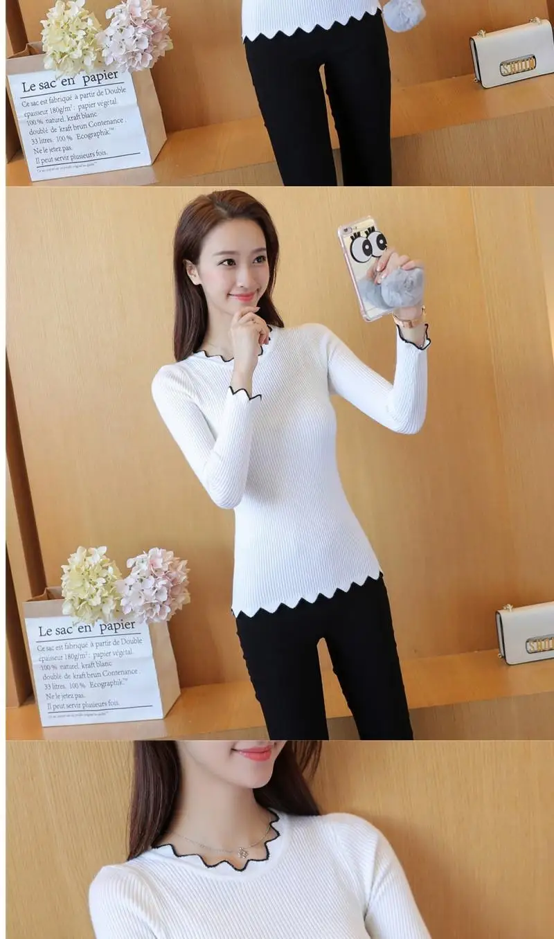 Spring and autumn new black and white inner knit long-sleeved sweater bottoming sweaters women slim tight lace collar