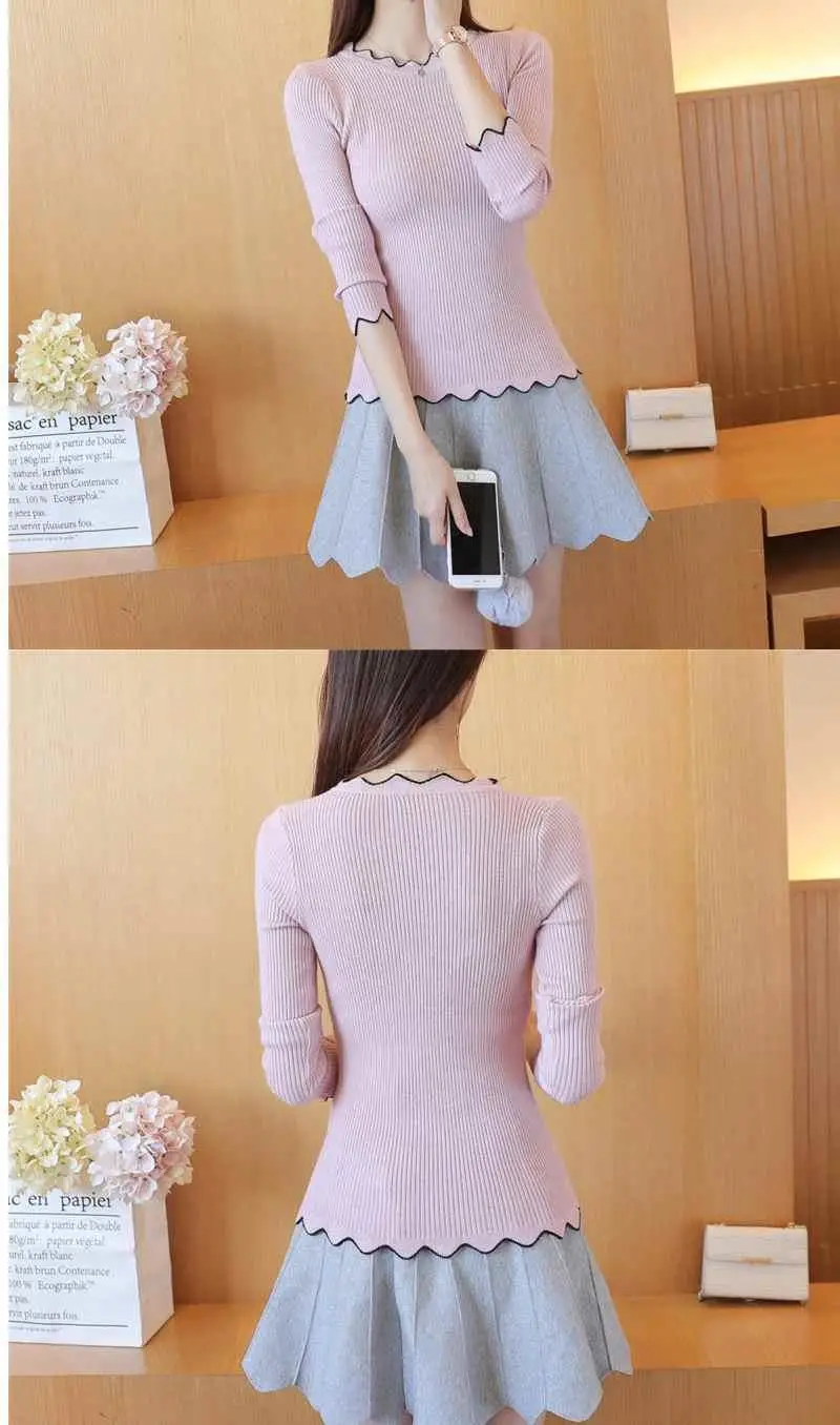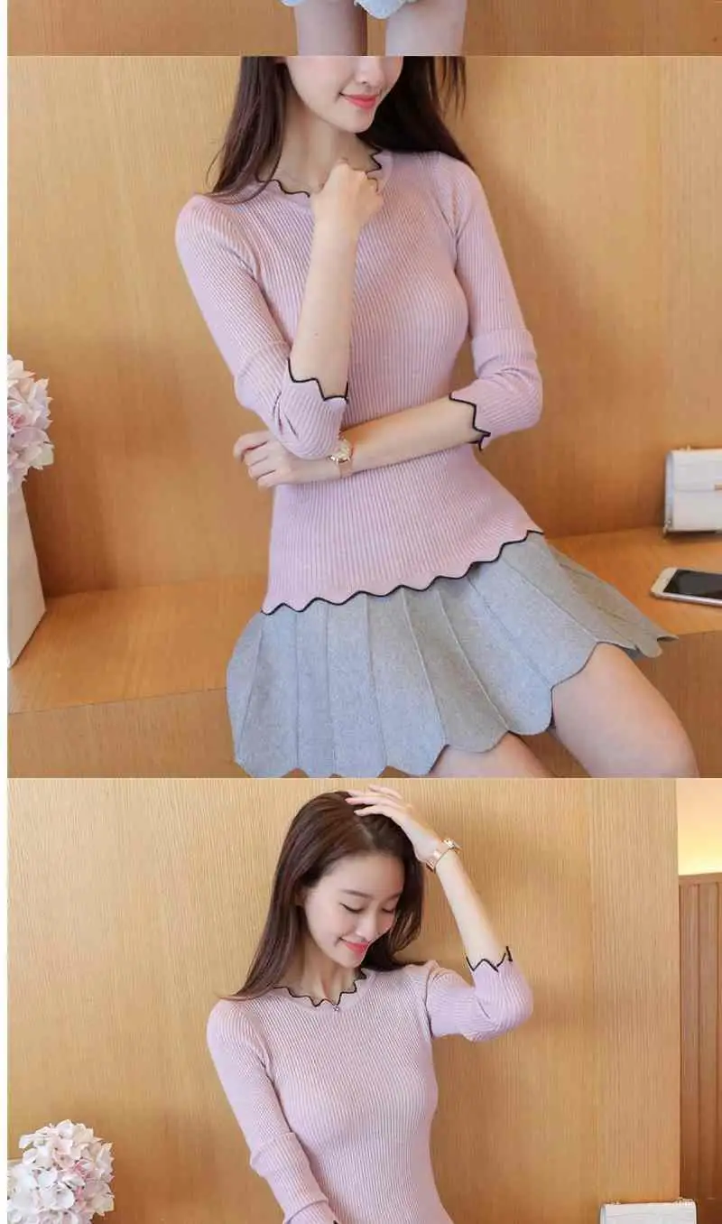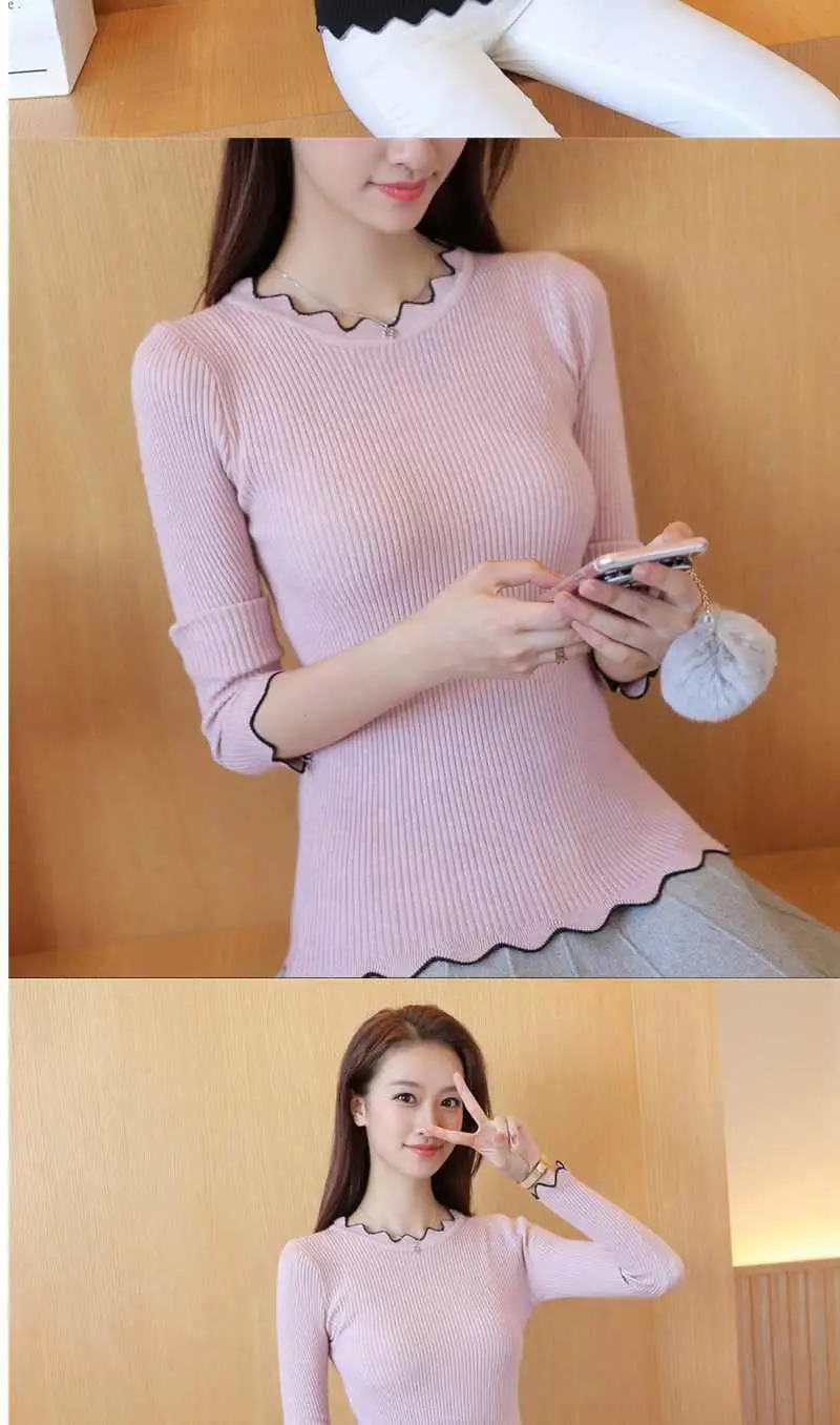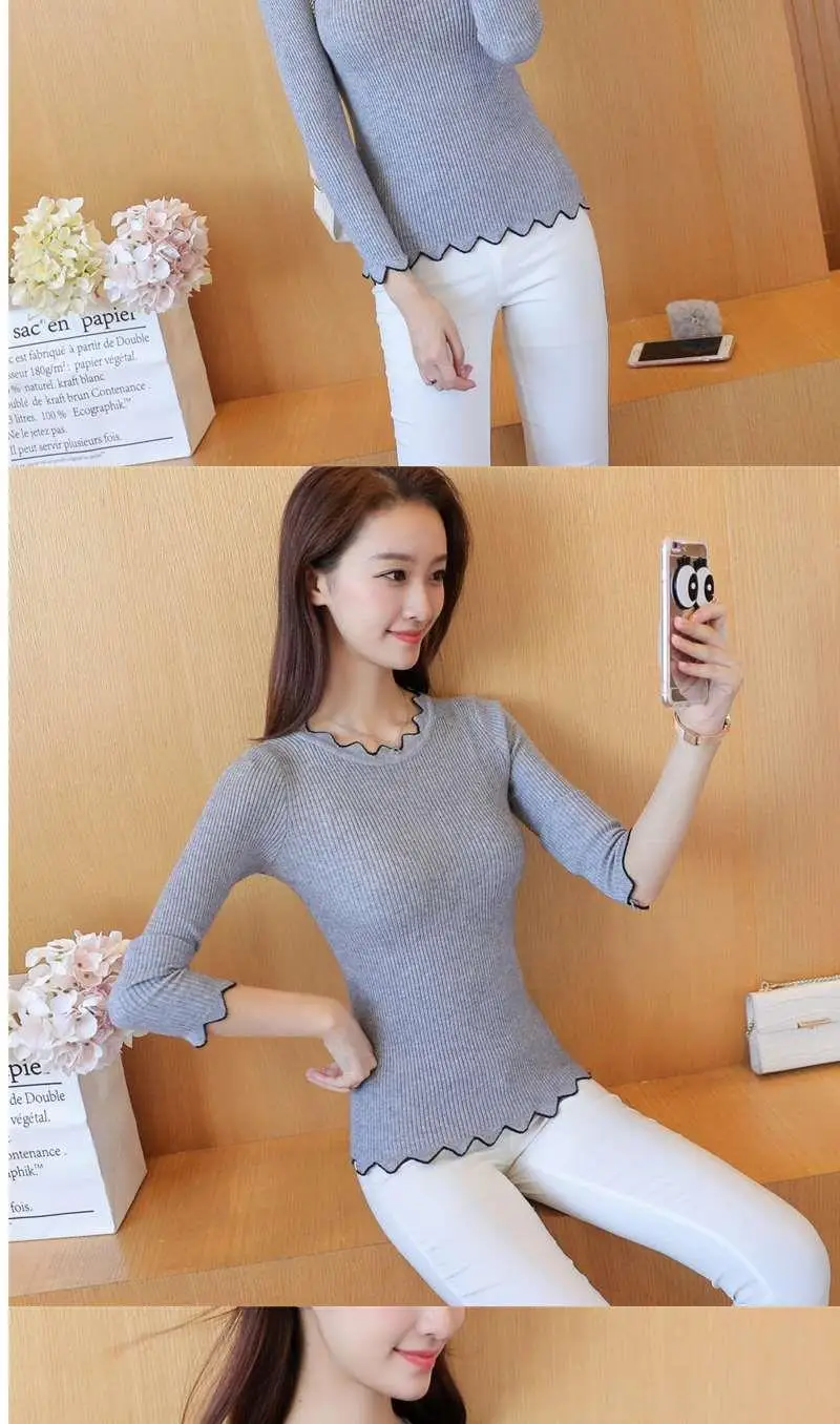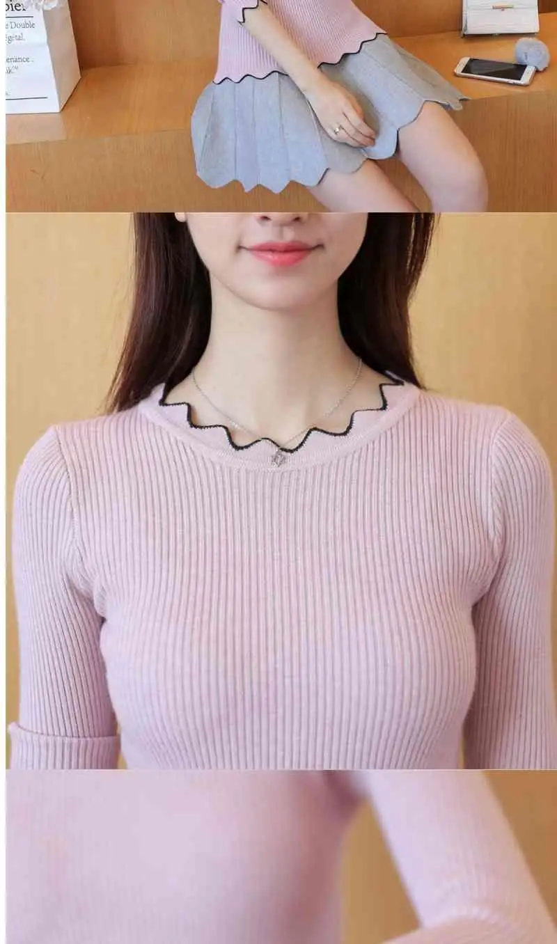 Spring and autumn new black and white inner knit long-sleeved sweater bottoming sweaters women slim tight lace collar