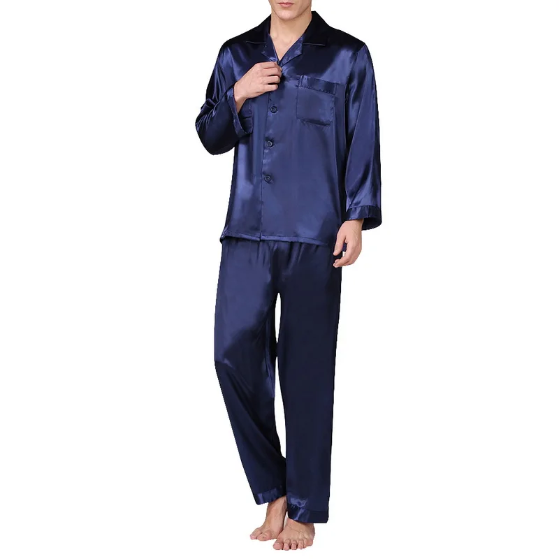 Spring And Summer Men's Classic Satin Pajama Long Sleeve Solid Color Sleepwear Large Size Homeservice Imitation Silk Pure Color