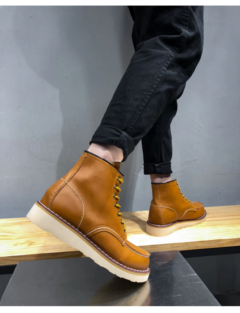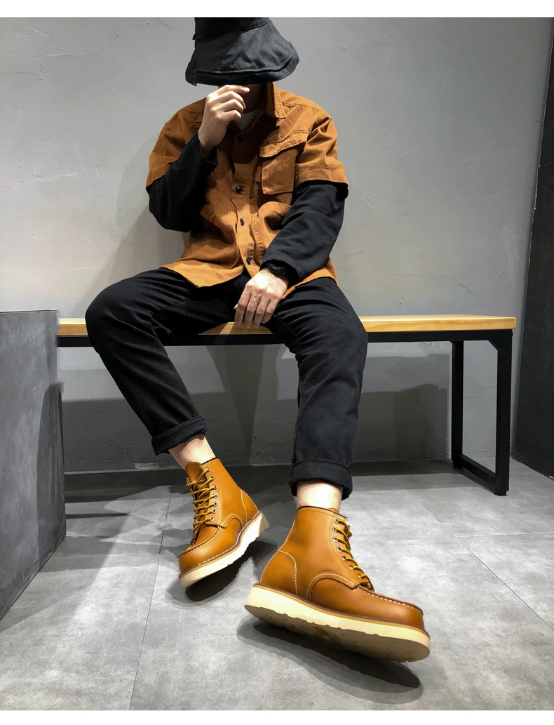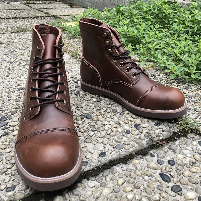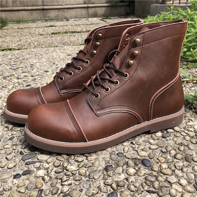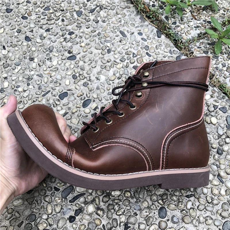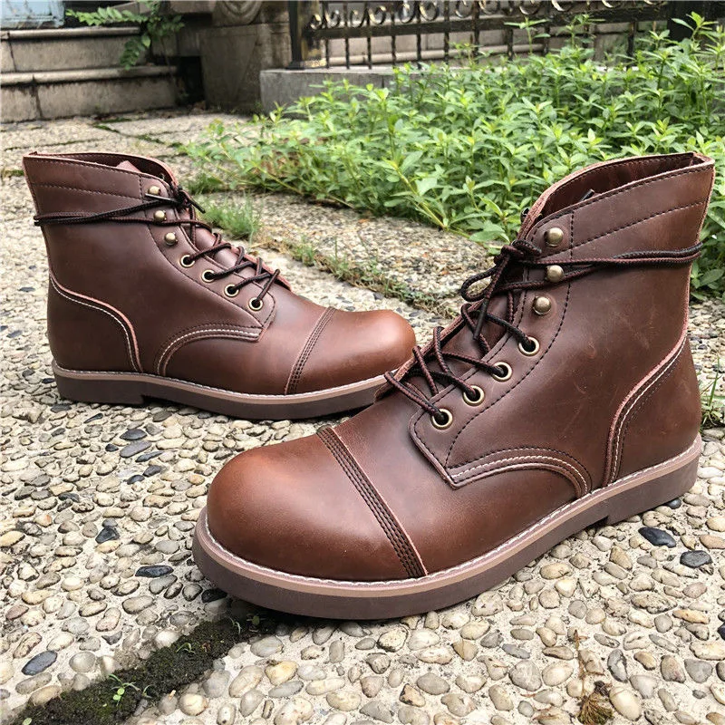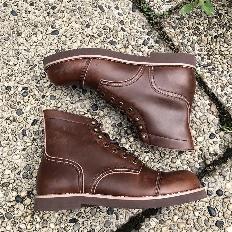 Genuine Cow Leather Round Toe Men Shoes Vintage High Quality Ankle Boots Tooling Desert Motorcycle Boots