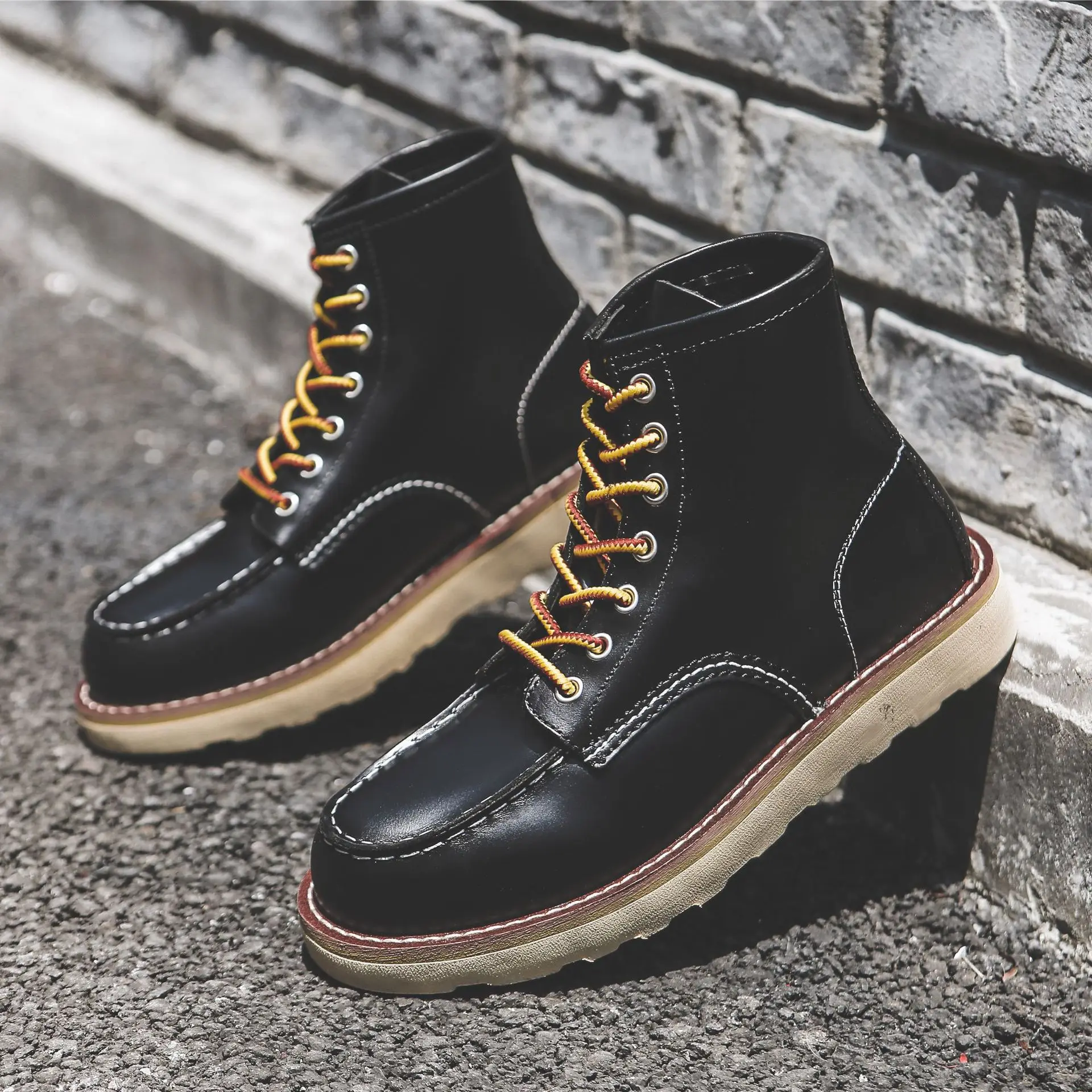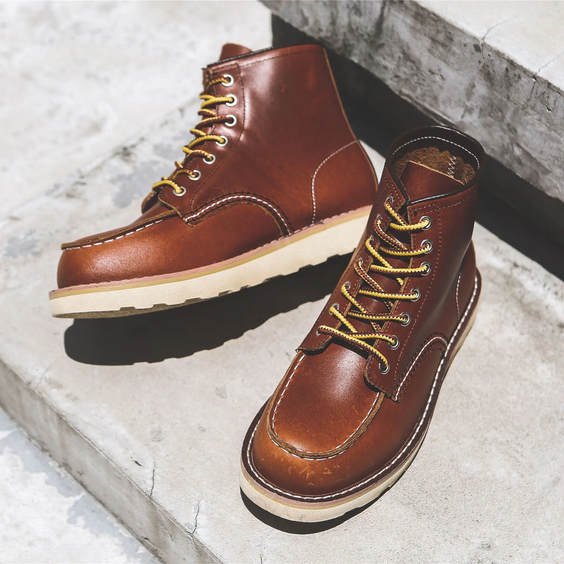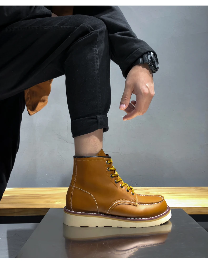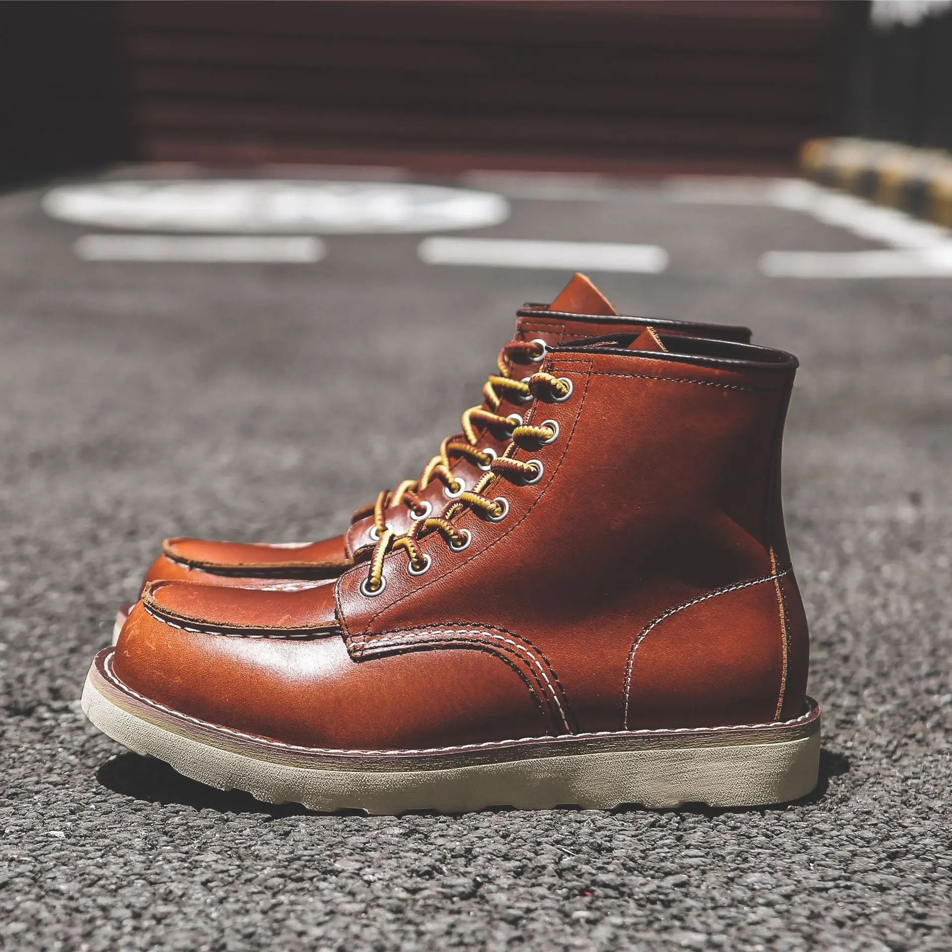 Genuine Cow Leather Round Toe Men Shoes Vintage High Quality Ankle Boots Tooling Desert Motorcycle Boots