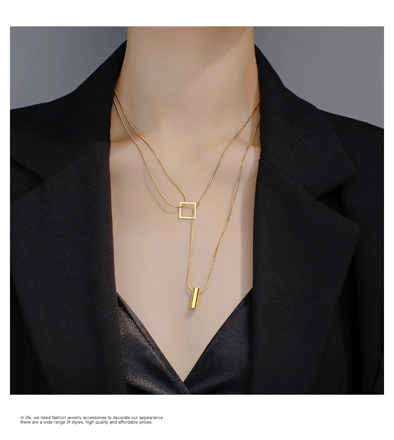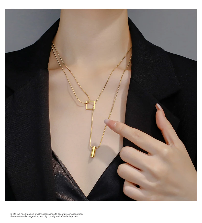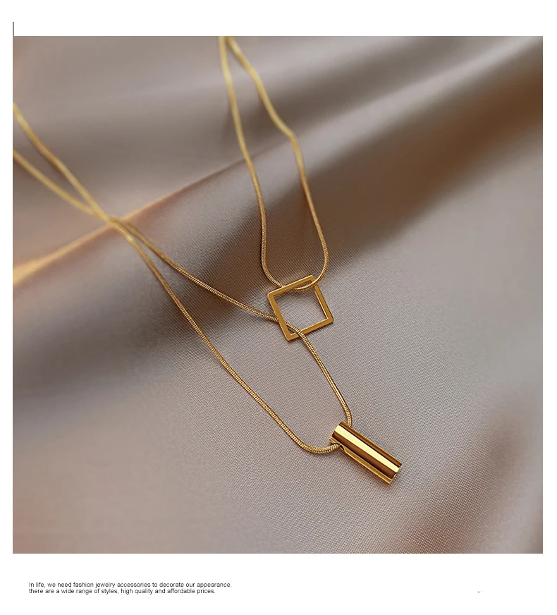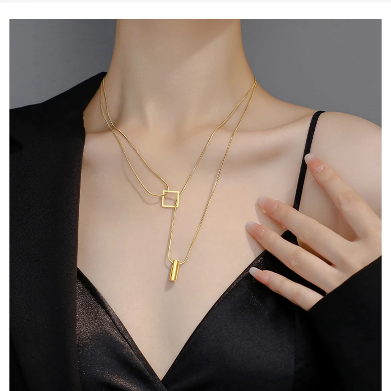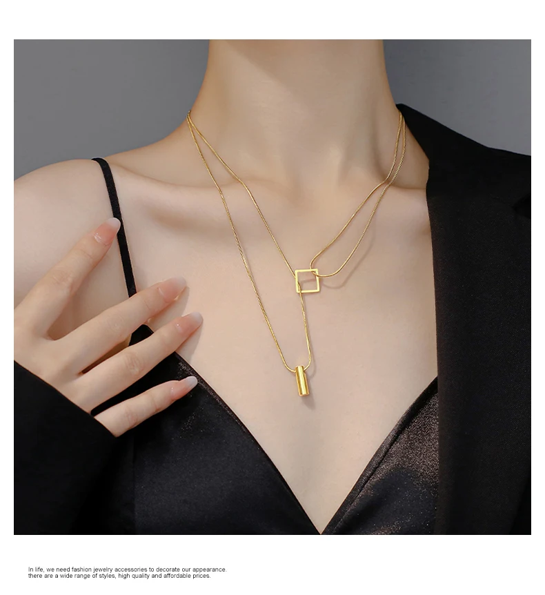 Stainless steel Gold Color Overlay Double-Layer Necklace 2022 New Women's Fashion Jewelry Party Girls' Fadeless Accessories Gift