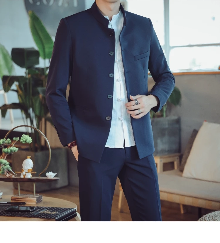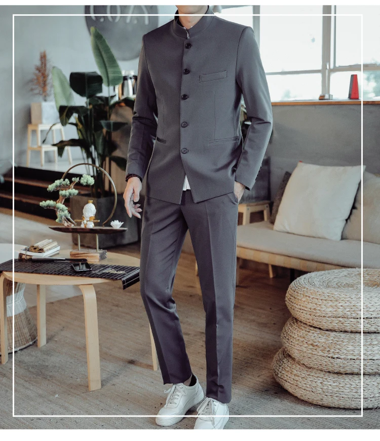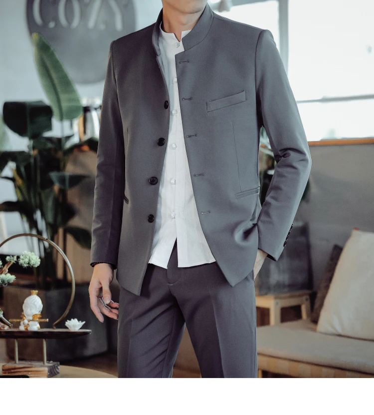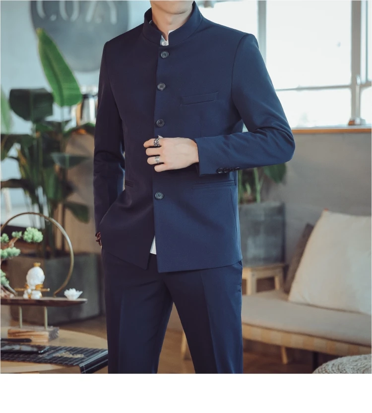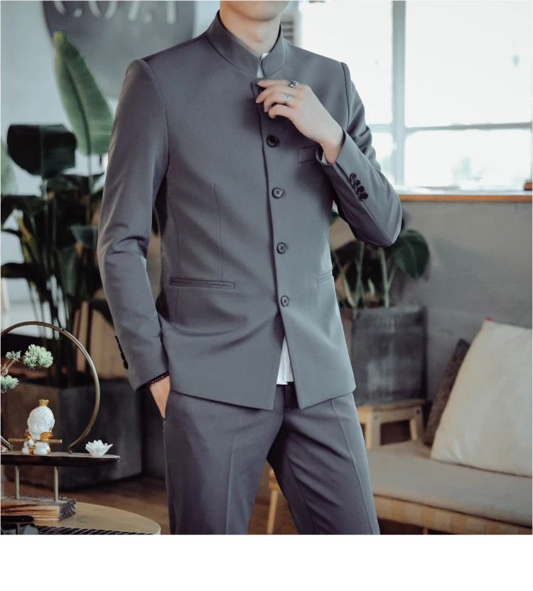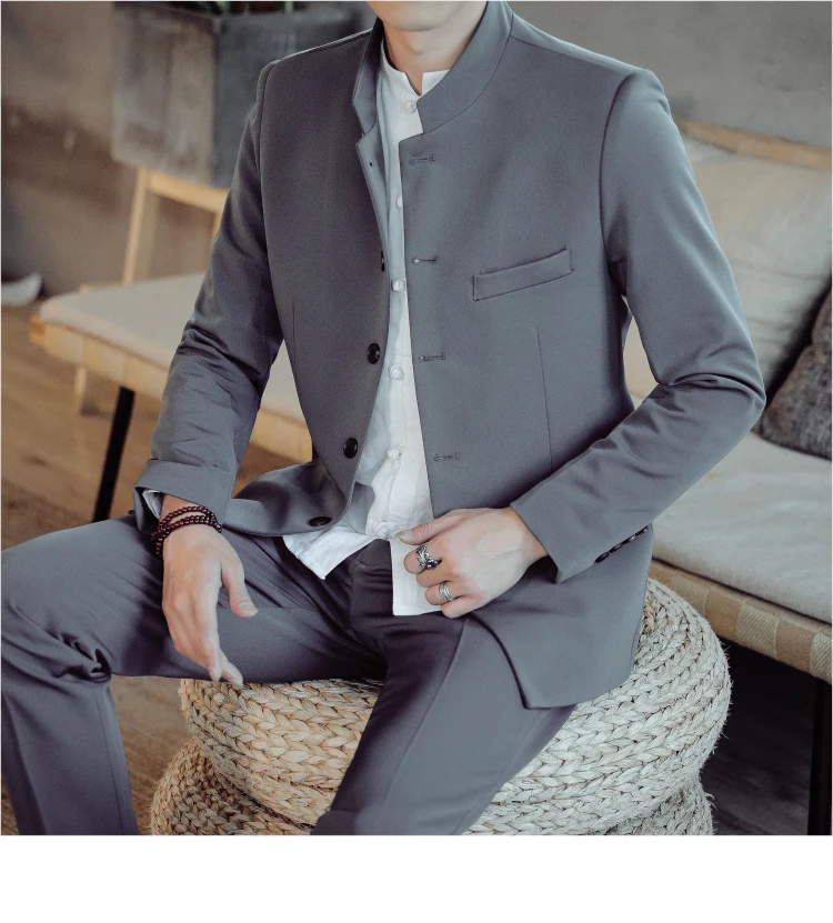 Suit Pants 2 Pcs Set / 2022 Fashion New Men's Casual Boutique Chinese Style Stand Collar Blazers Jacket Trousers
