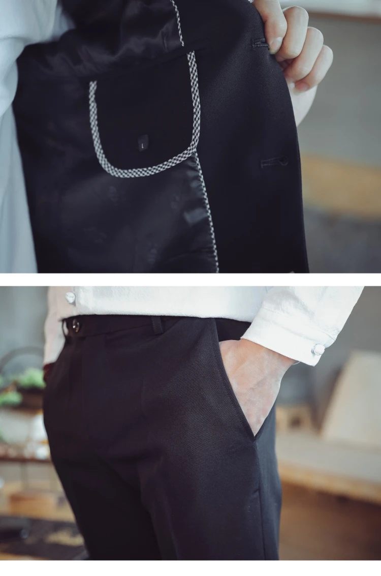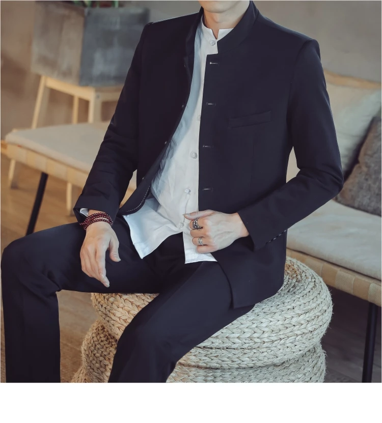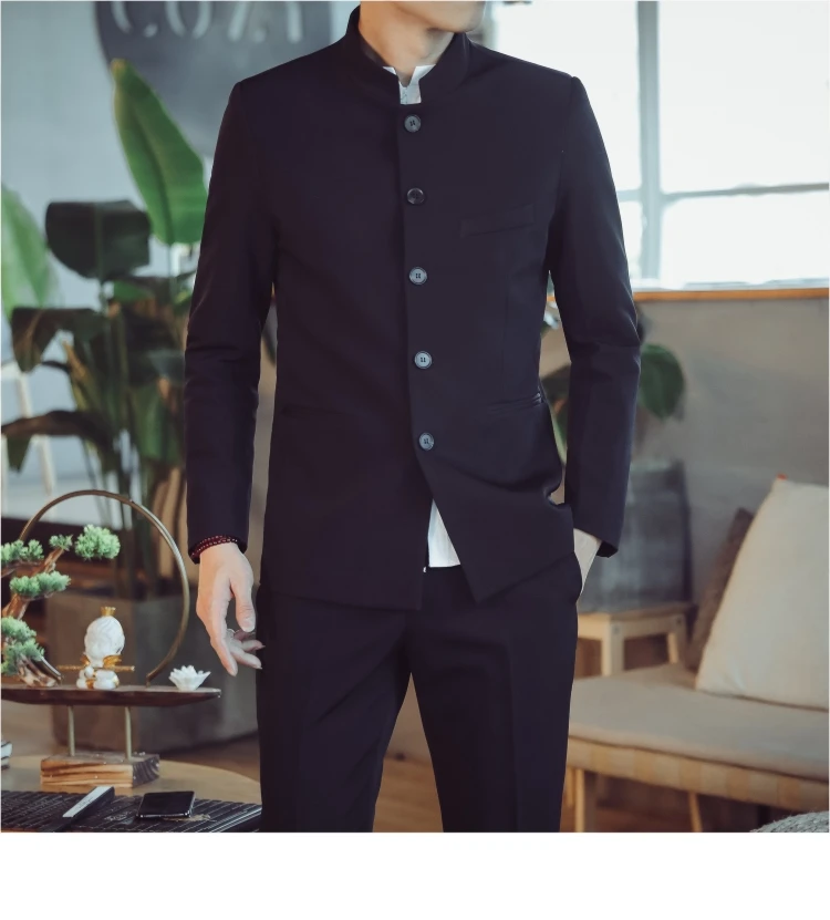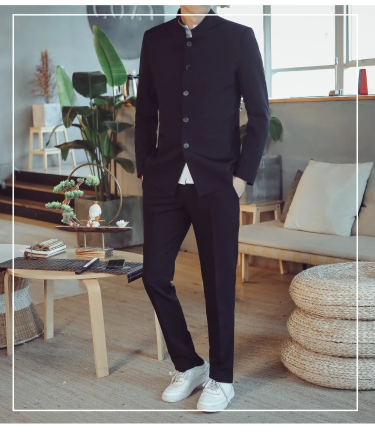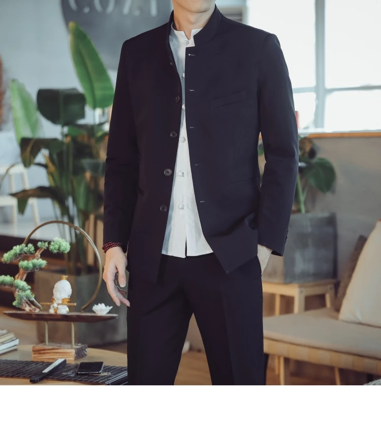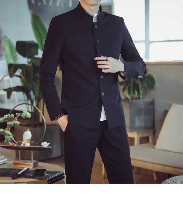 Suit Pants 2 Pcs Set / 2022 Fashion New Men's Casual Boutique Chinese Style Stand Collar Blazers Jacket Trousers