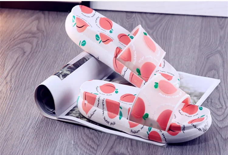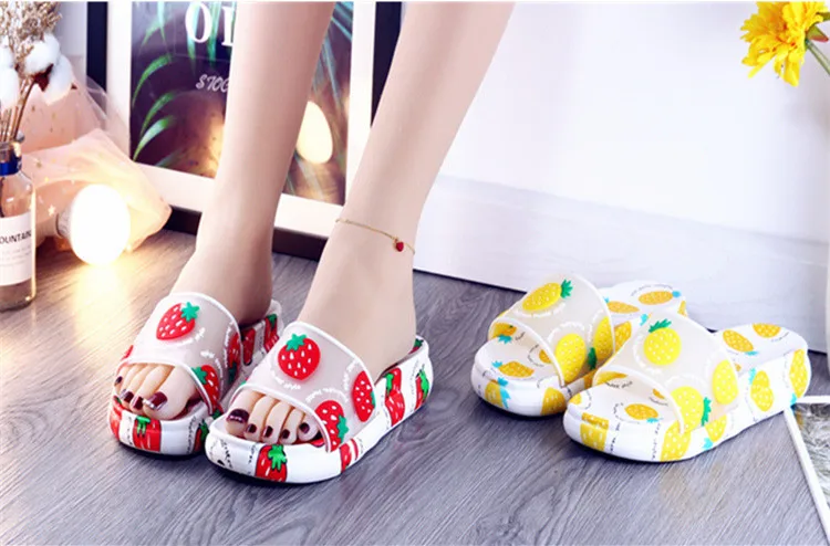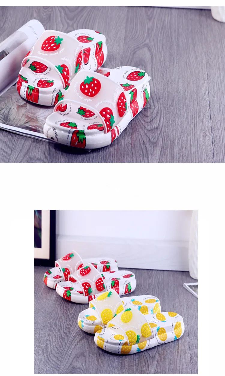 Bathroom Women Slippers Cartoons Fruit pattern Transparent Non-slip Ladies Beach Slides Platform Wedges Home Womans Shoes