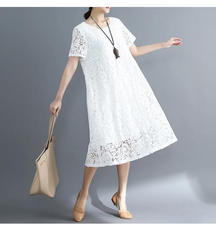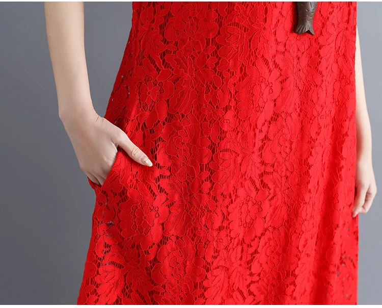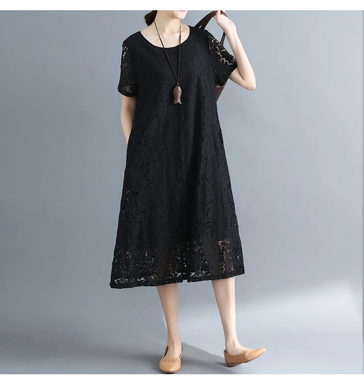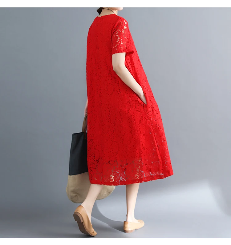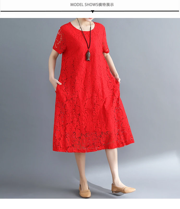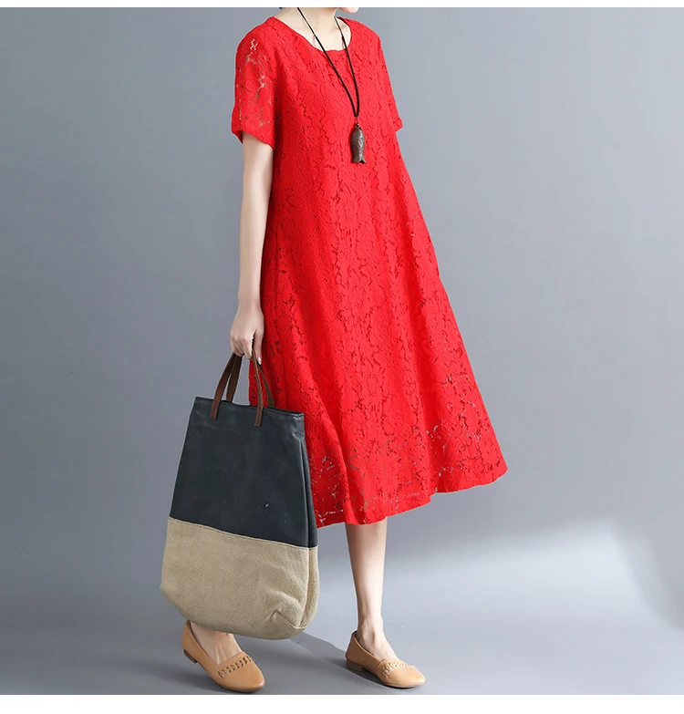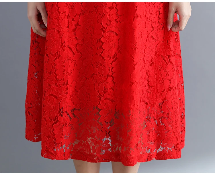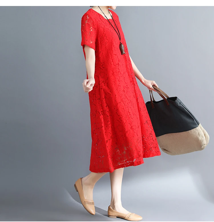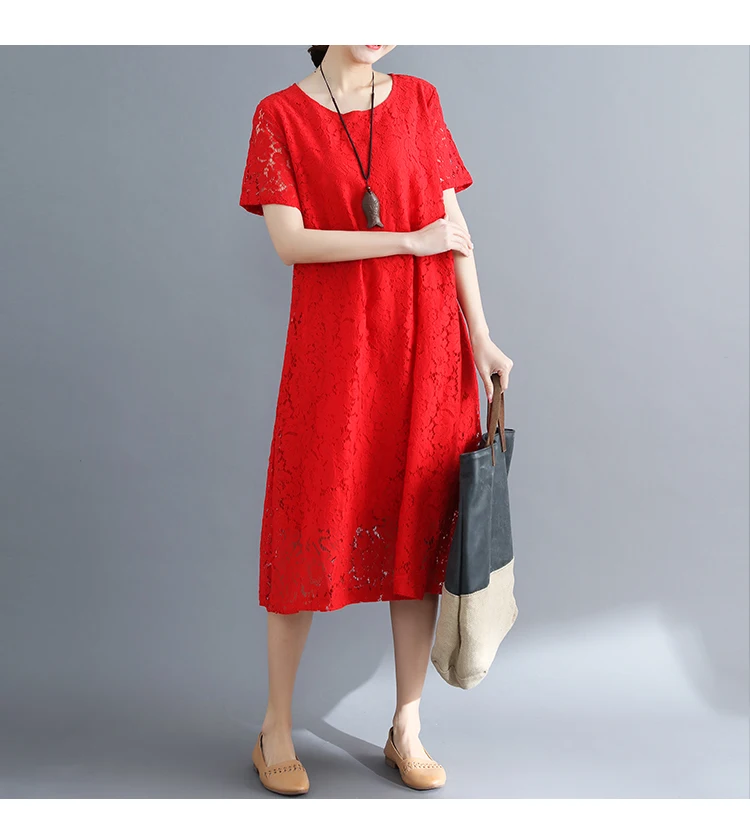 Summer Dress Women vintage white casual loose A-Line red Dresses elegant lace Hollow Out Fashion black ladies dress