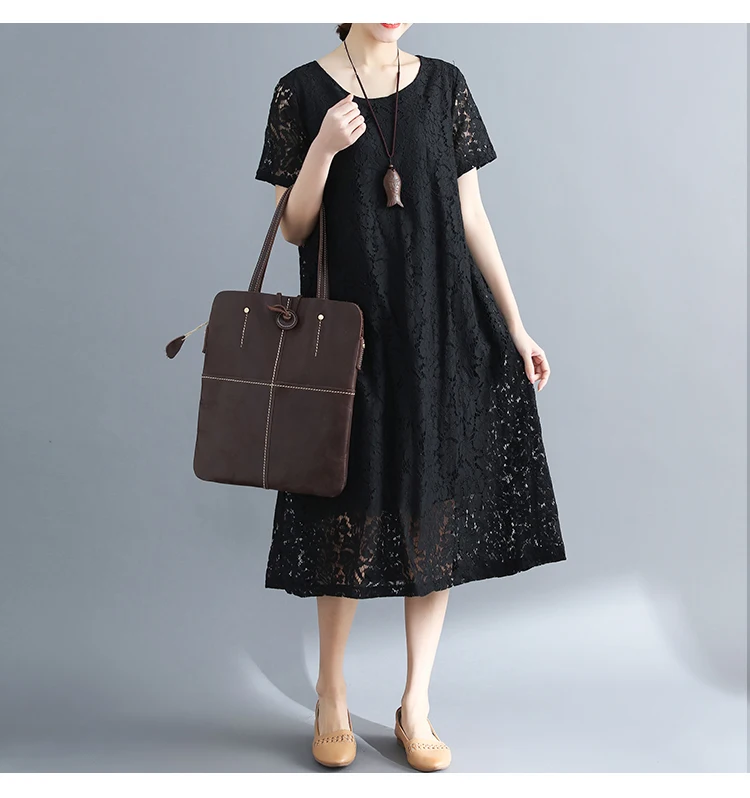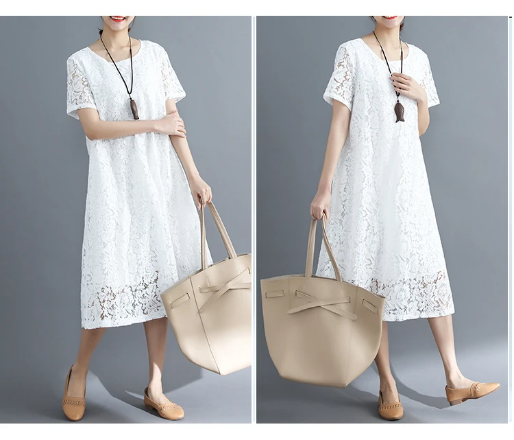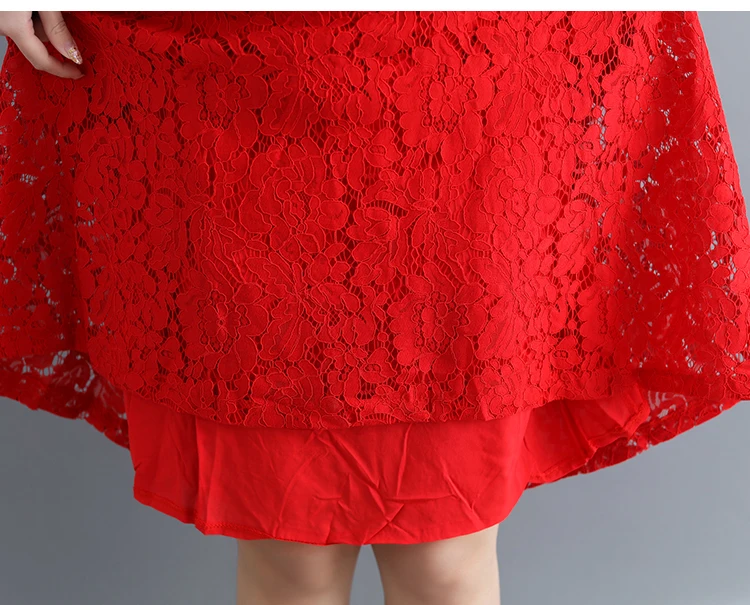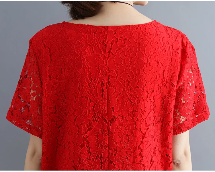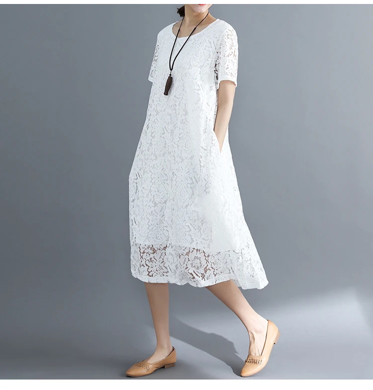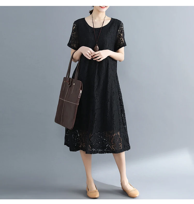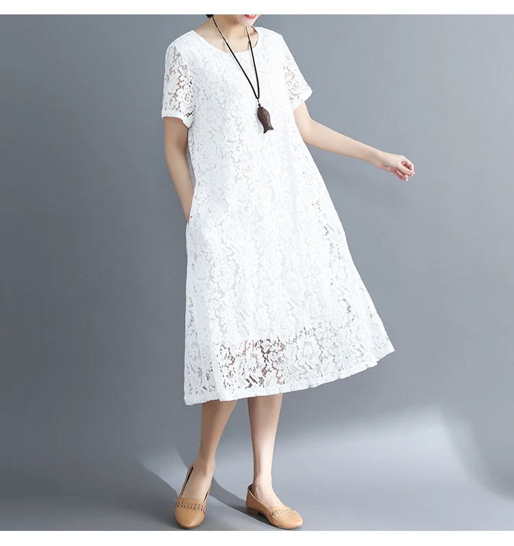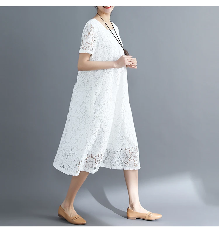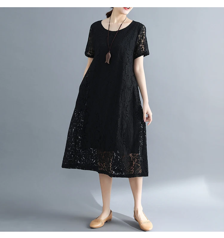 Summer Dress Women vintage white casual loose A-Line red Dresses elegant lace Hollow Out Fashion black ladies dress