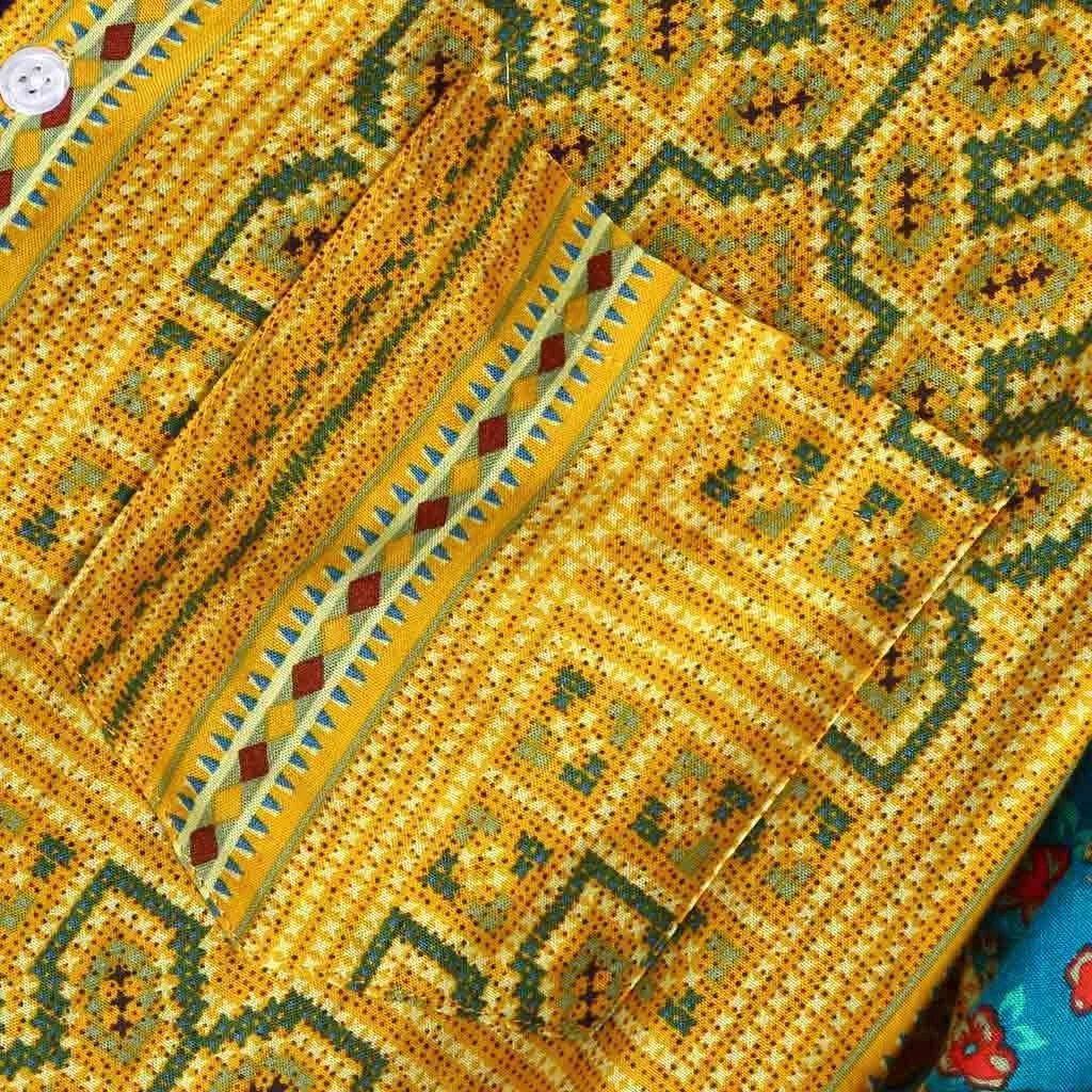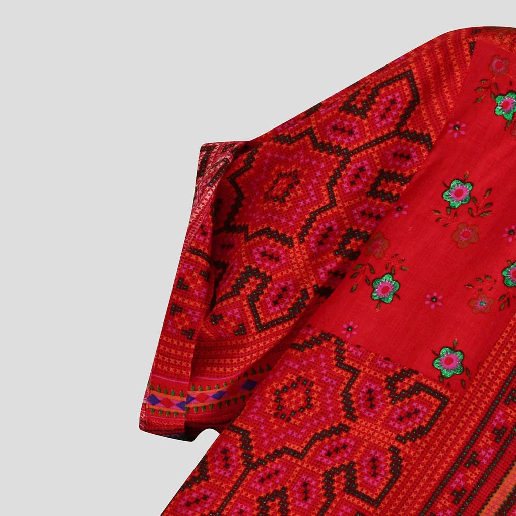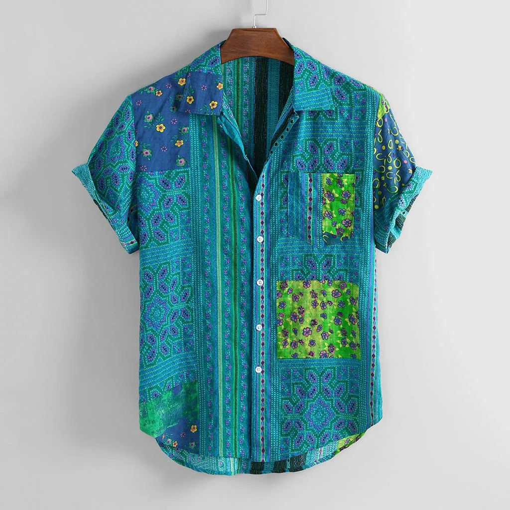 Mens Vintage Ethnic Printed Turn Down Collar Short Sleeve Loose Casual Shirts