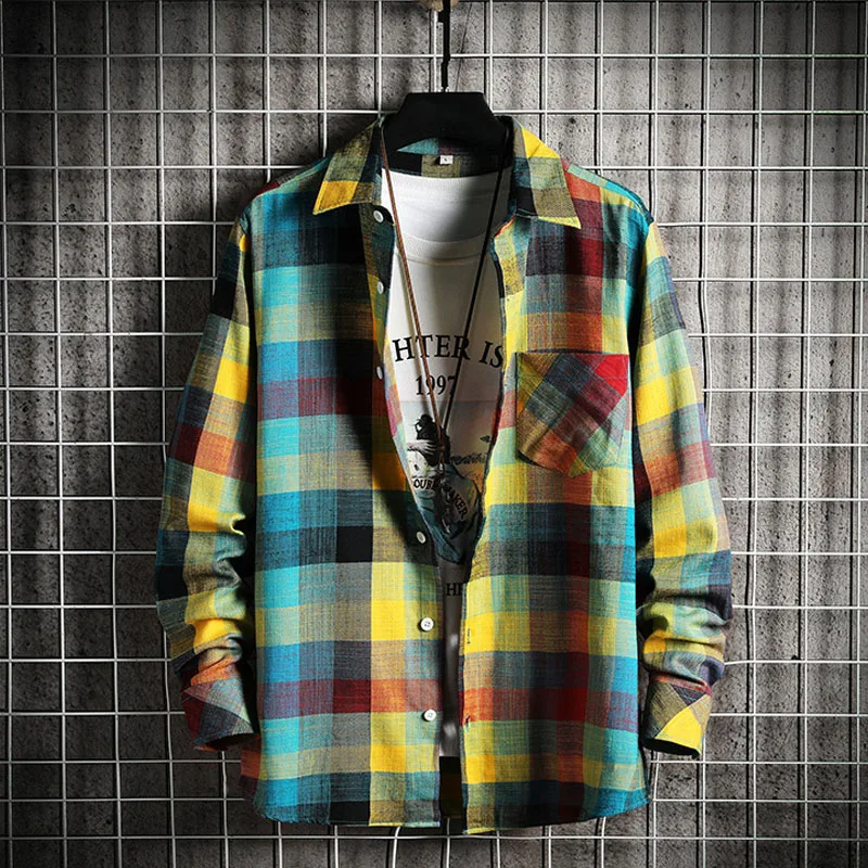 Summer Mens Checkered Plaid Men Shirts Spring New Mens Plaid Flannel Lumberjack Tartan Check Shirt Brushed Cotton Casual Shirts