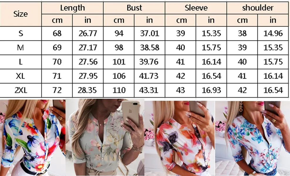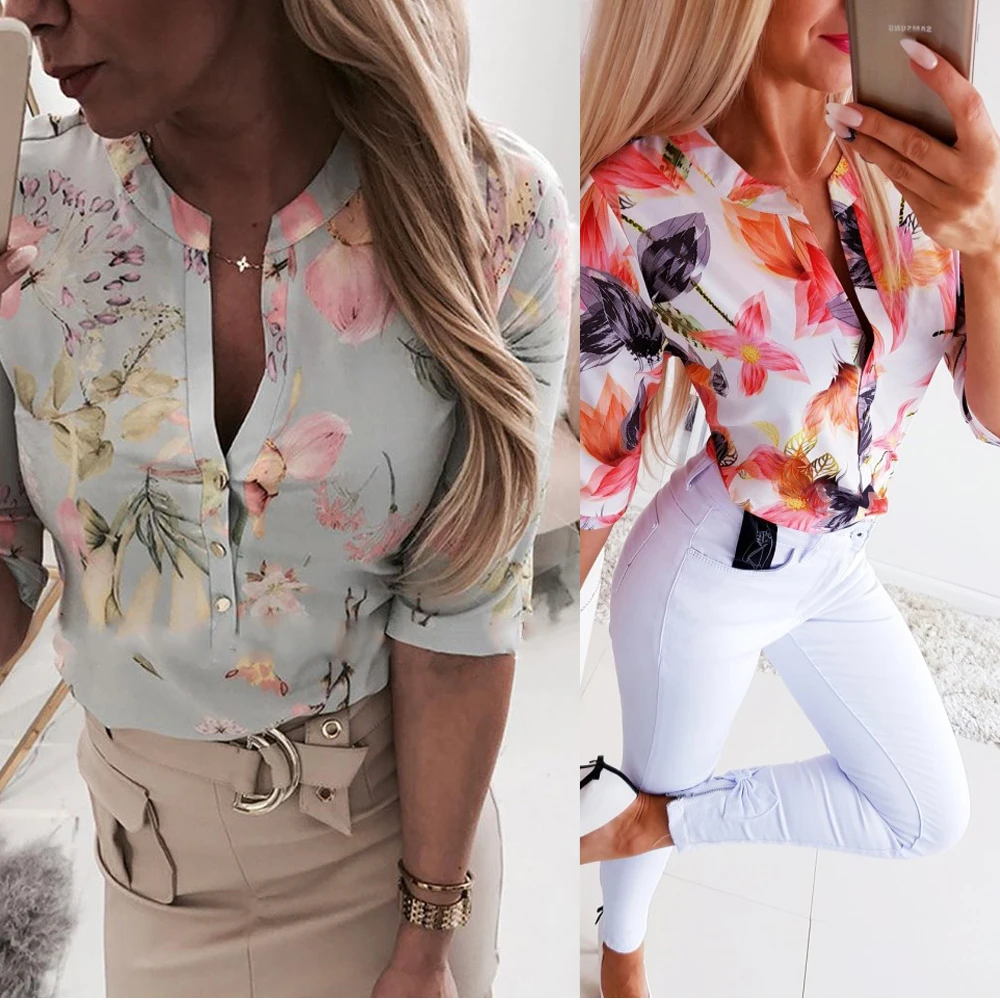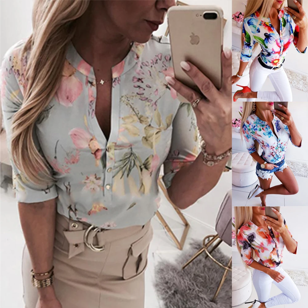 Summer Women 3/4 Sleeve Floral Loose Blouses Tops Woman Female Shirt OL Ladies Casual Button Blouse Streetwear 2019 New Arrival