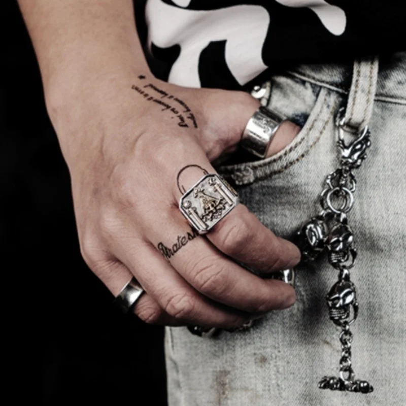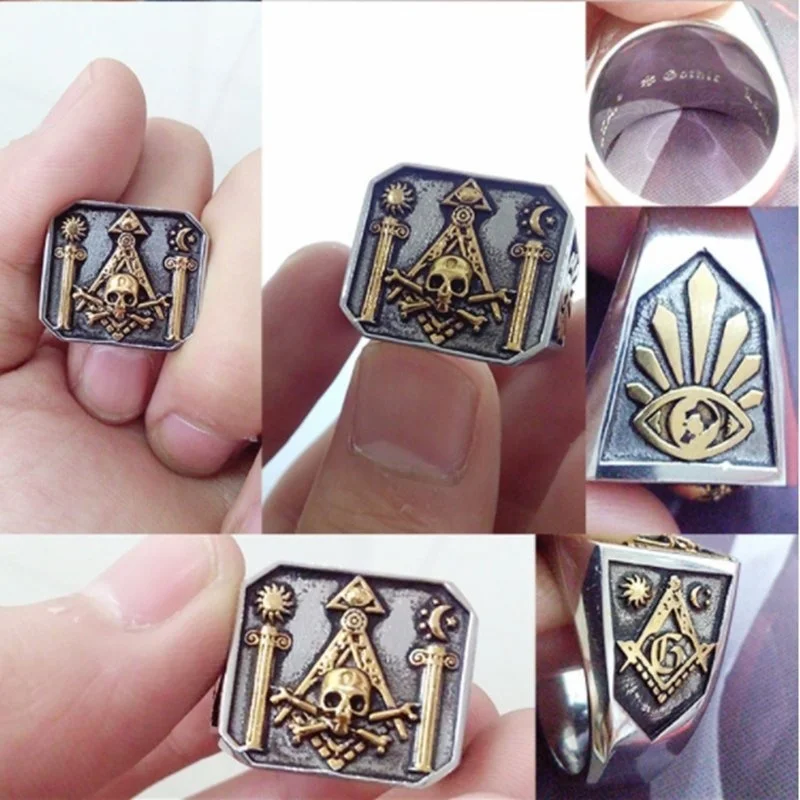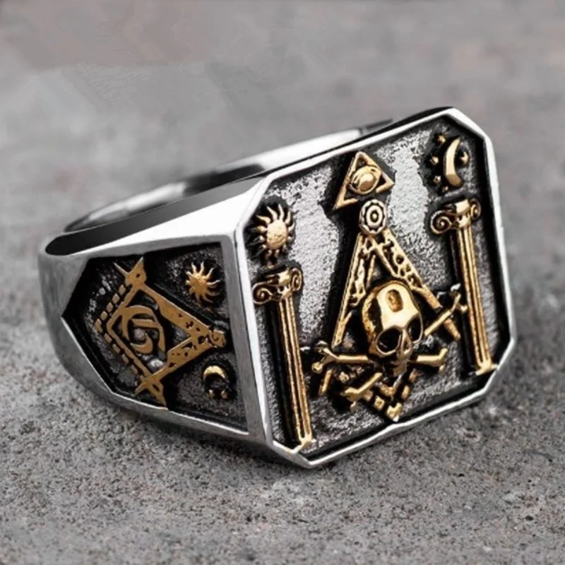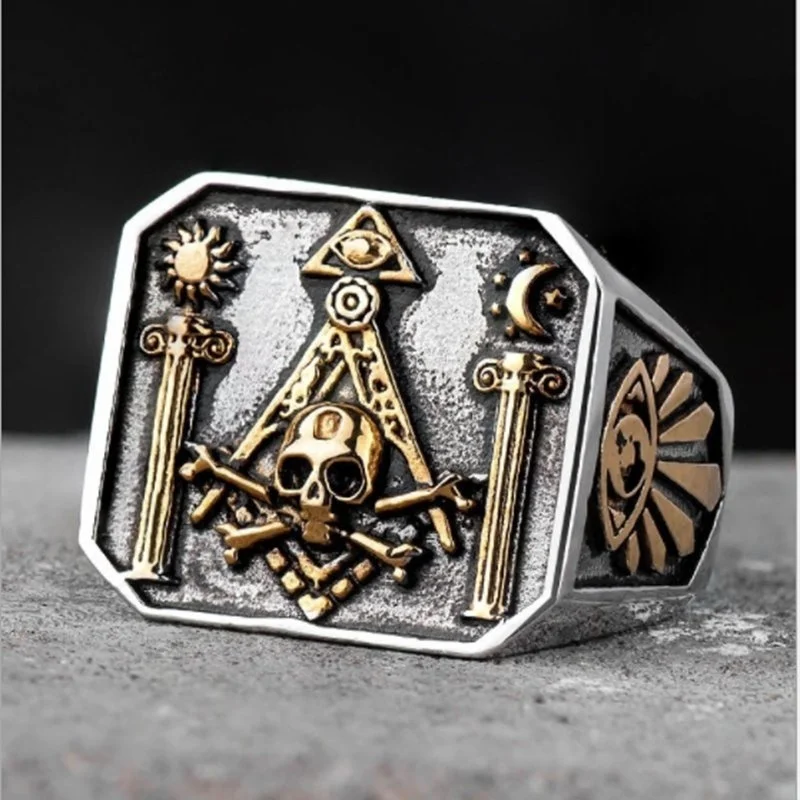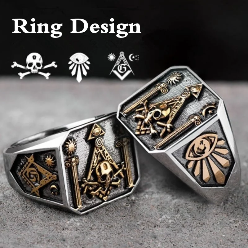 Sun Moon Demon Eye Punk Skull Masonic High Quality Metal Ring Jewelry
