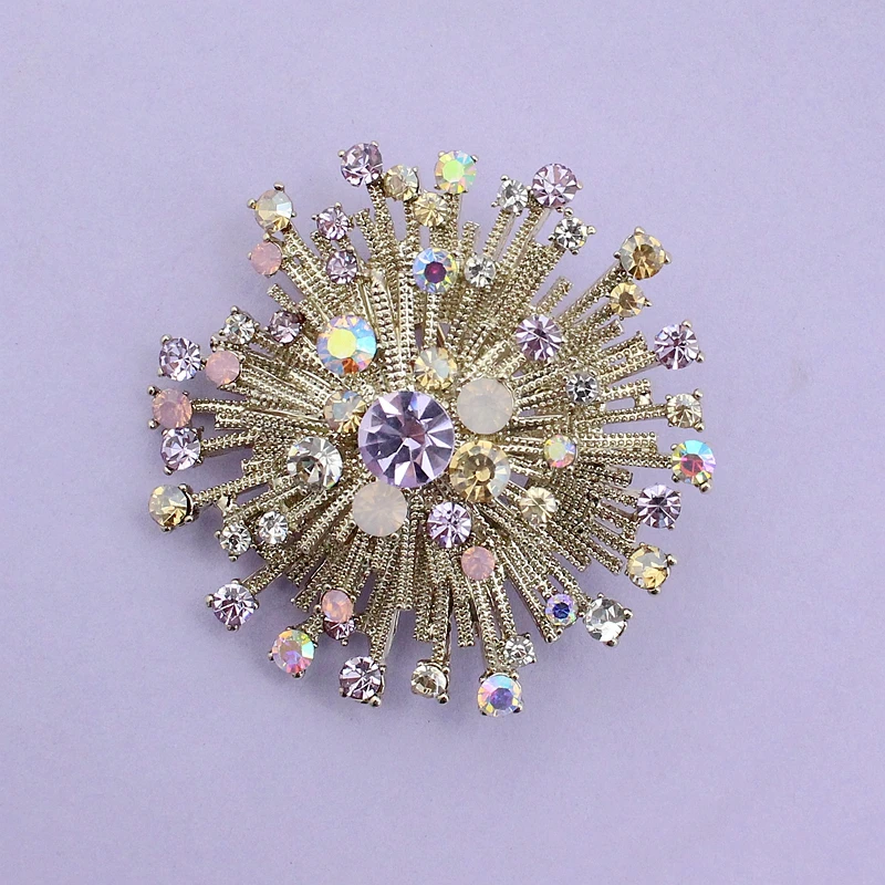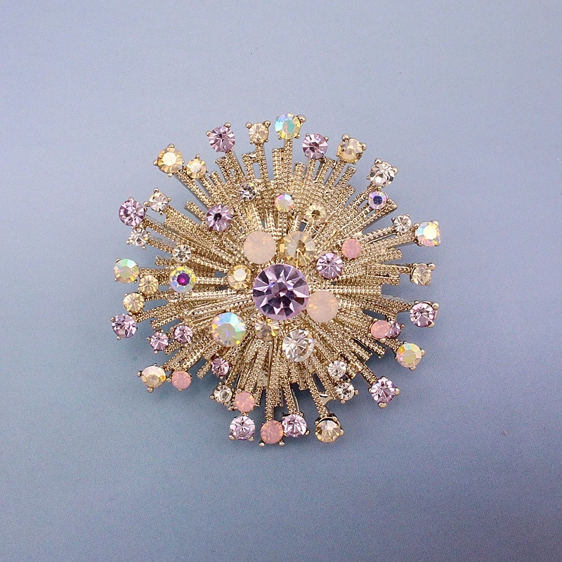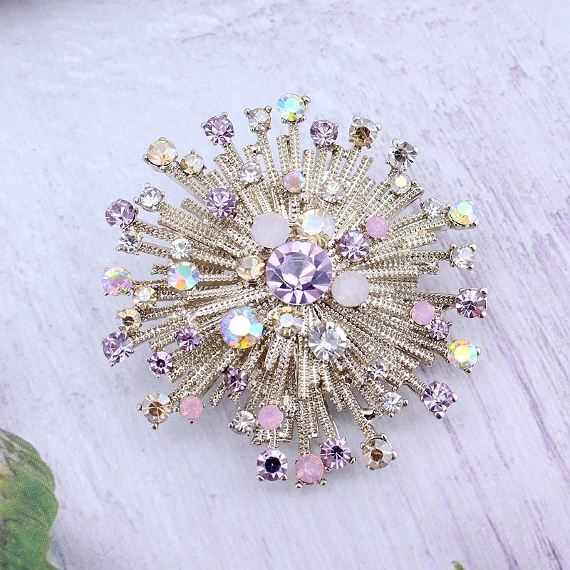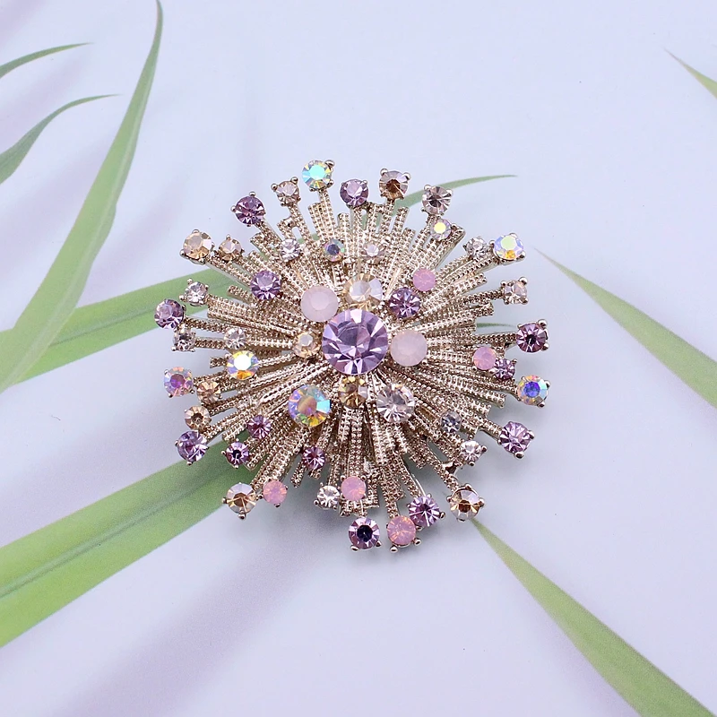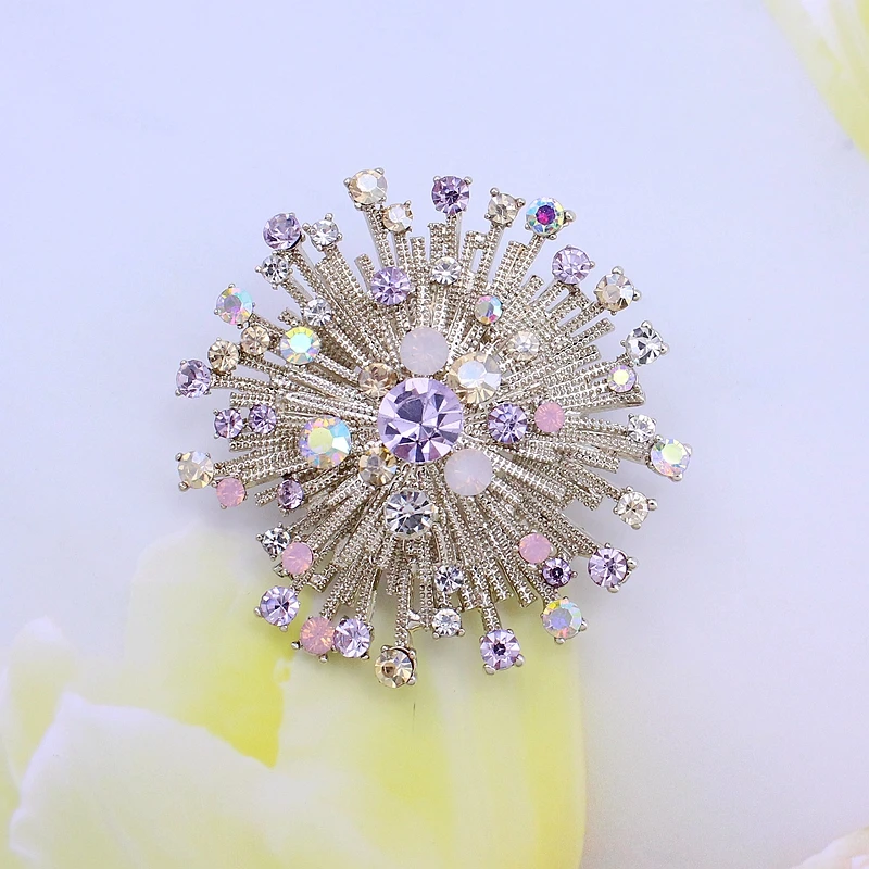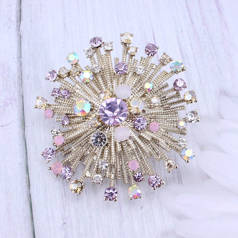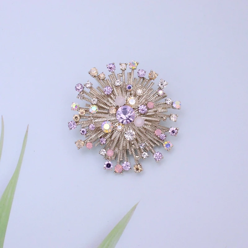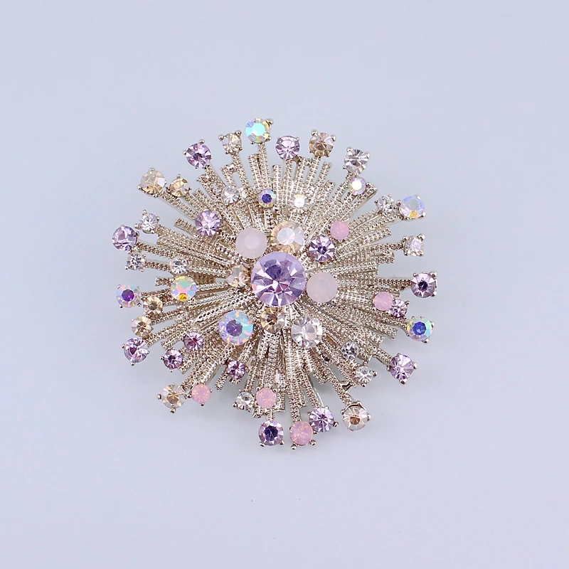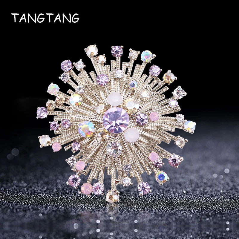 TANGTANG Flower Brooch For Women Divergent Lavender Rhinestone Gold Jewelry Pin Brooch For Bridal Wedding Accessories Ornaments