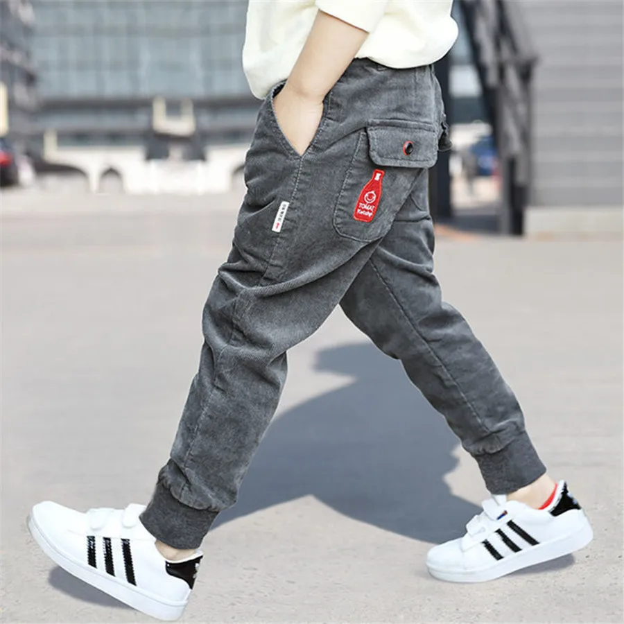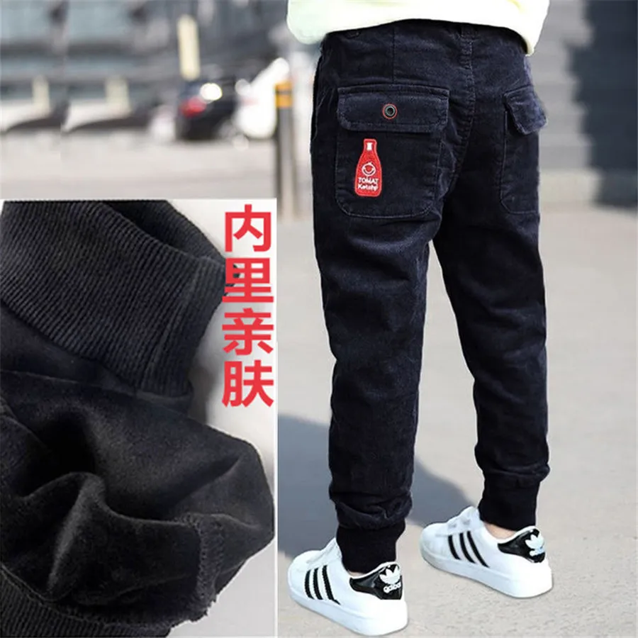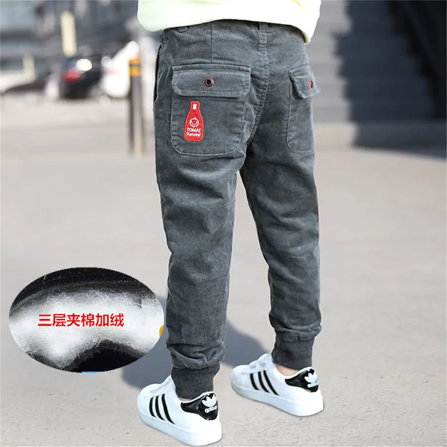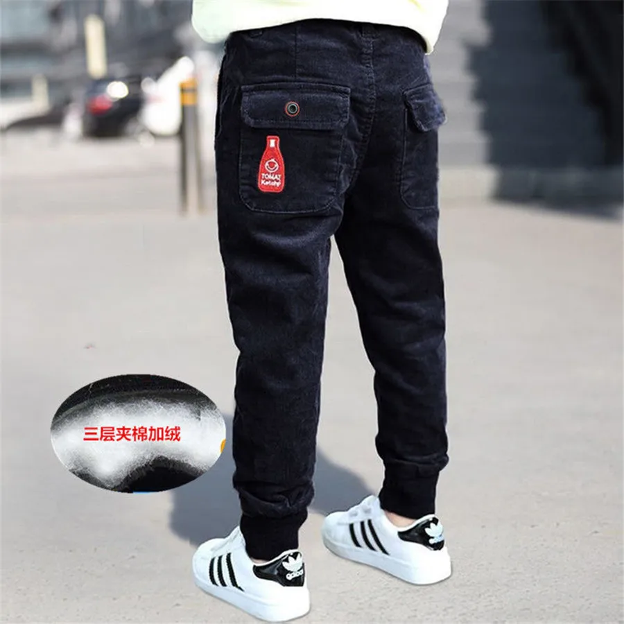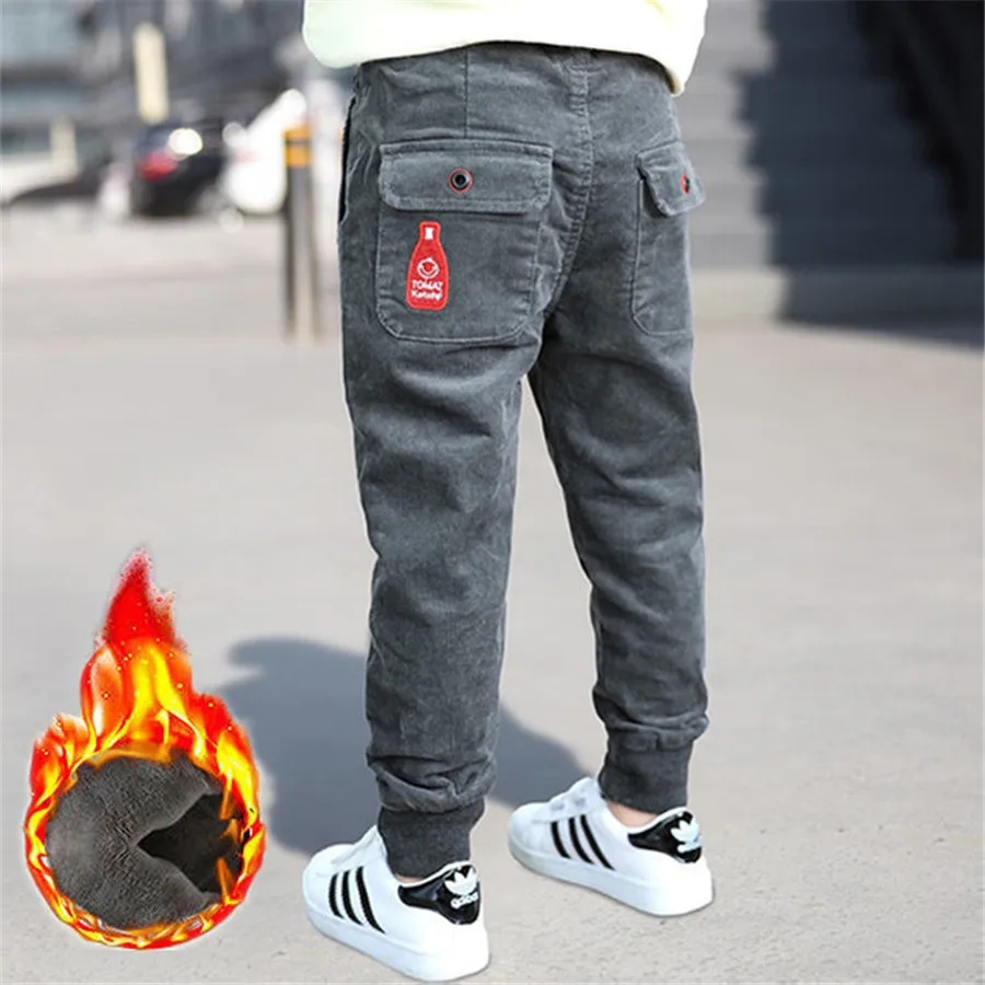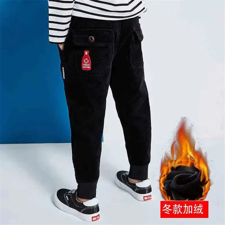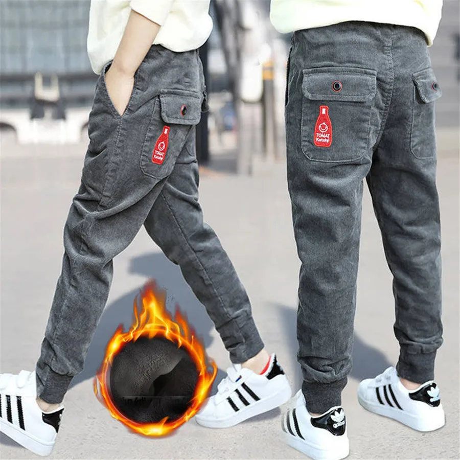 Winter Teenage Boys Warm Thick Pants Cotton Pockets Kids Sports Fleece Lined Pants For Boys Autumn 6 8 10 12 Year Kids Clothes