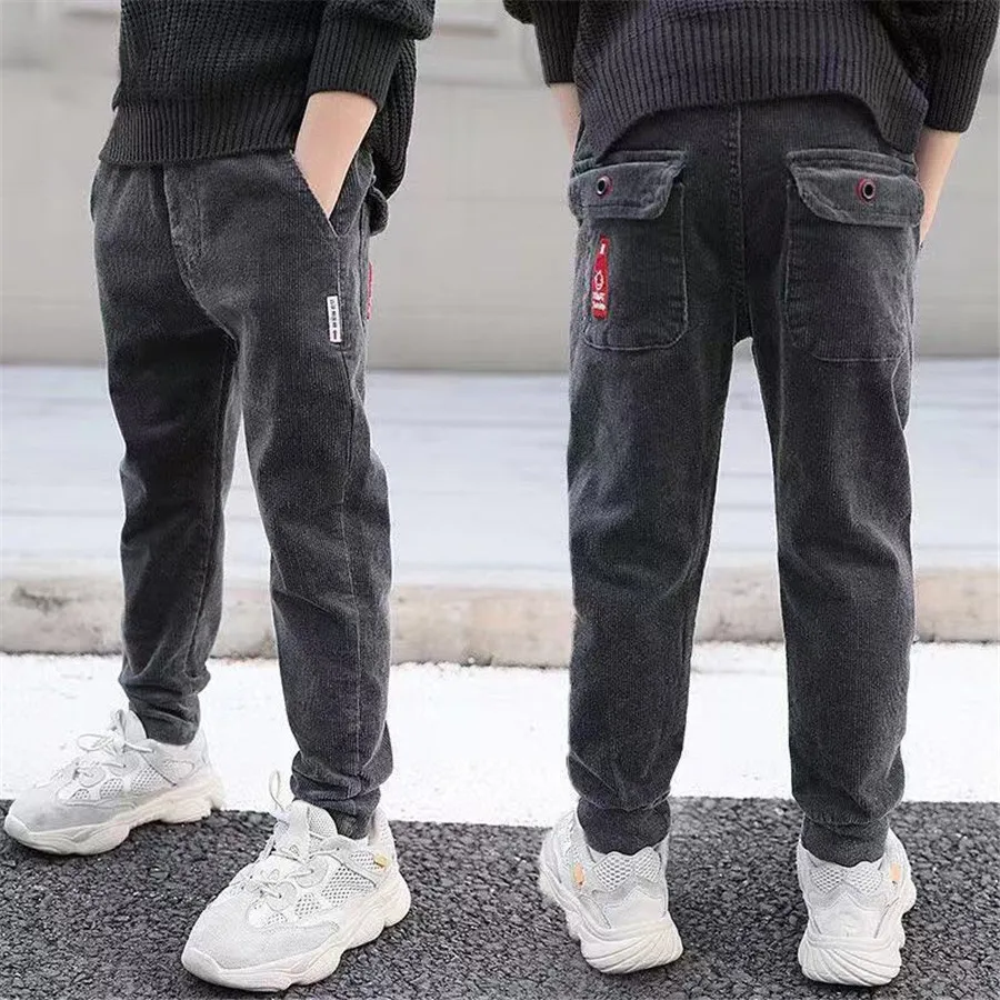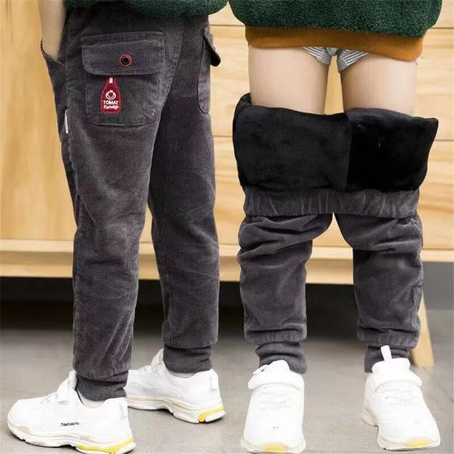 Teenage Boys Warm Thick Pants Cotton Pockets Kids Sports Fleece Lined Pants For Boys 6 8 10 12 Year Kids Clothes