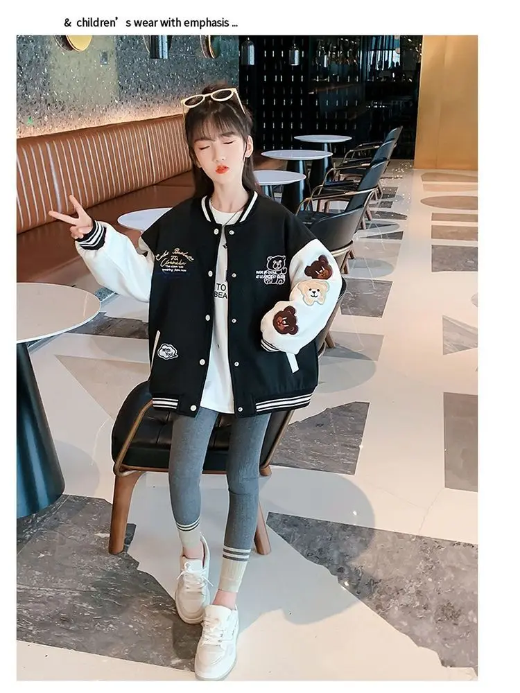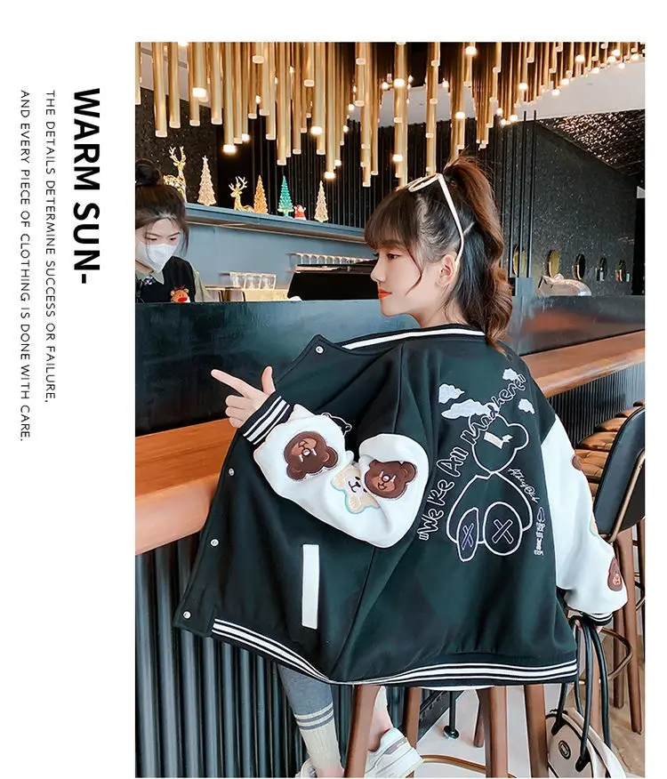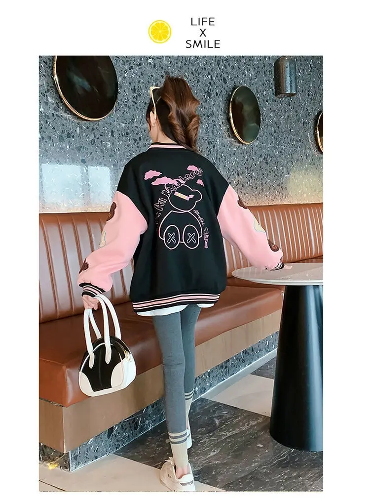 Teens Spring And Autumn Cartoon Style Baseball Uniform New Bomber Jacket For Girls Fashion Casual Clothes Streetwear Coat
