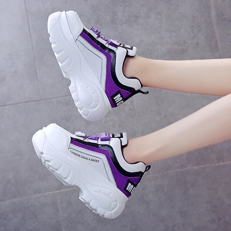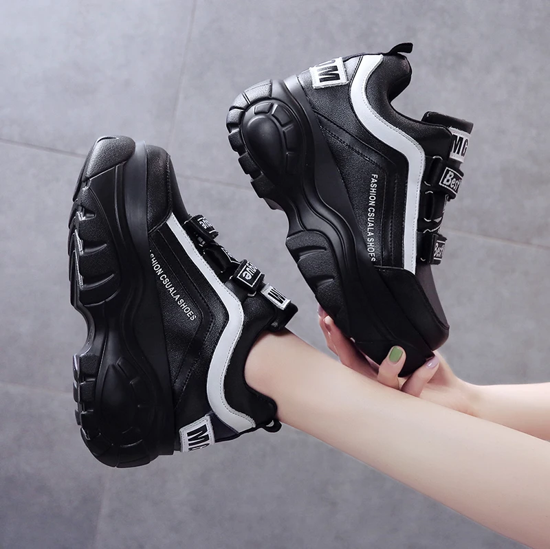 Thick Bottom Chunky Sneakers Women White Black Patchwork High Platform Shoes Woman Casual Autumn Winter Wedges Footwear G788