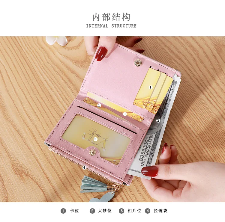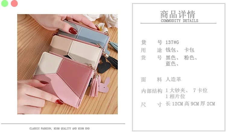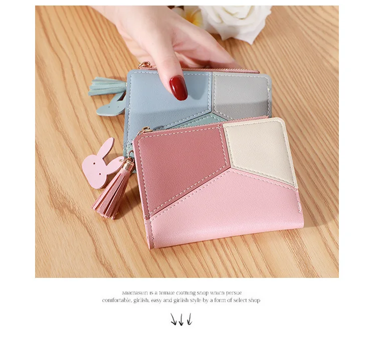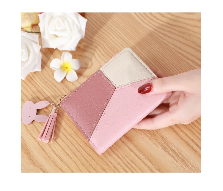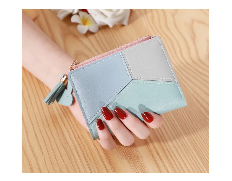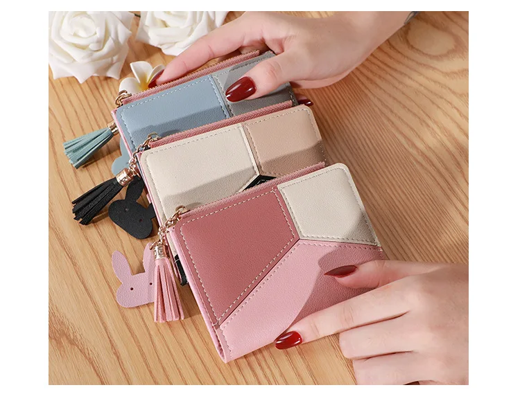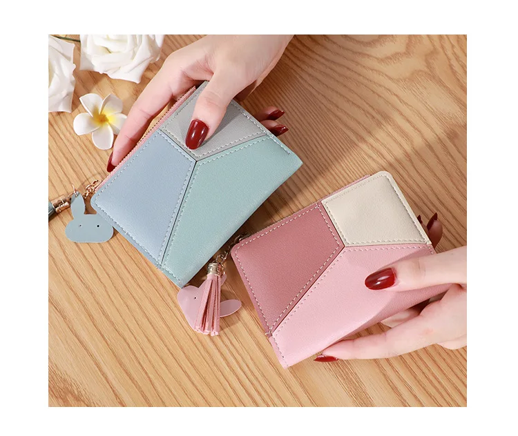 Three Color Patchwork Women's Wallets 2022 New Style Short Ladies Zipper Money Bag Tassel Simple Coin Purse for Women Designer