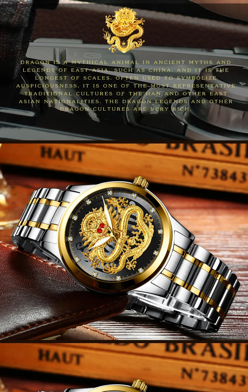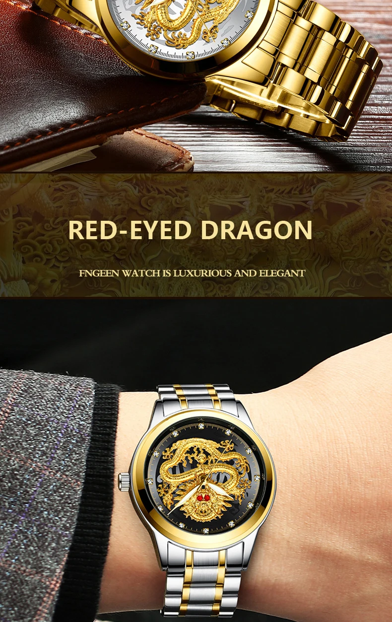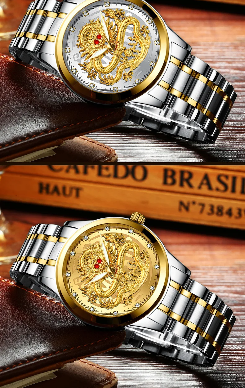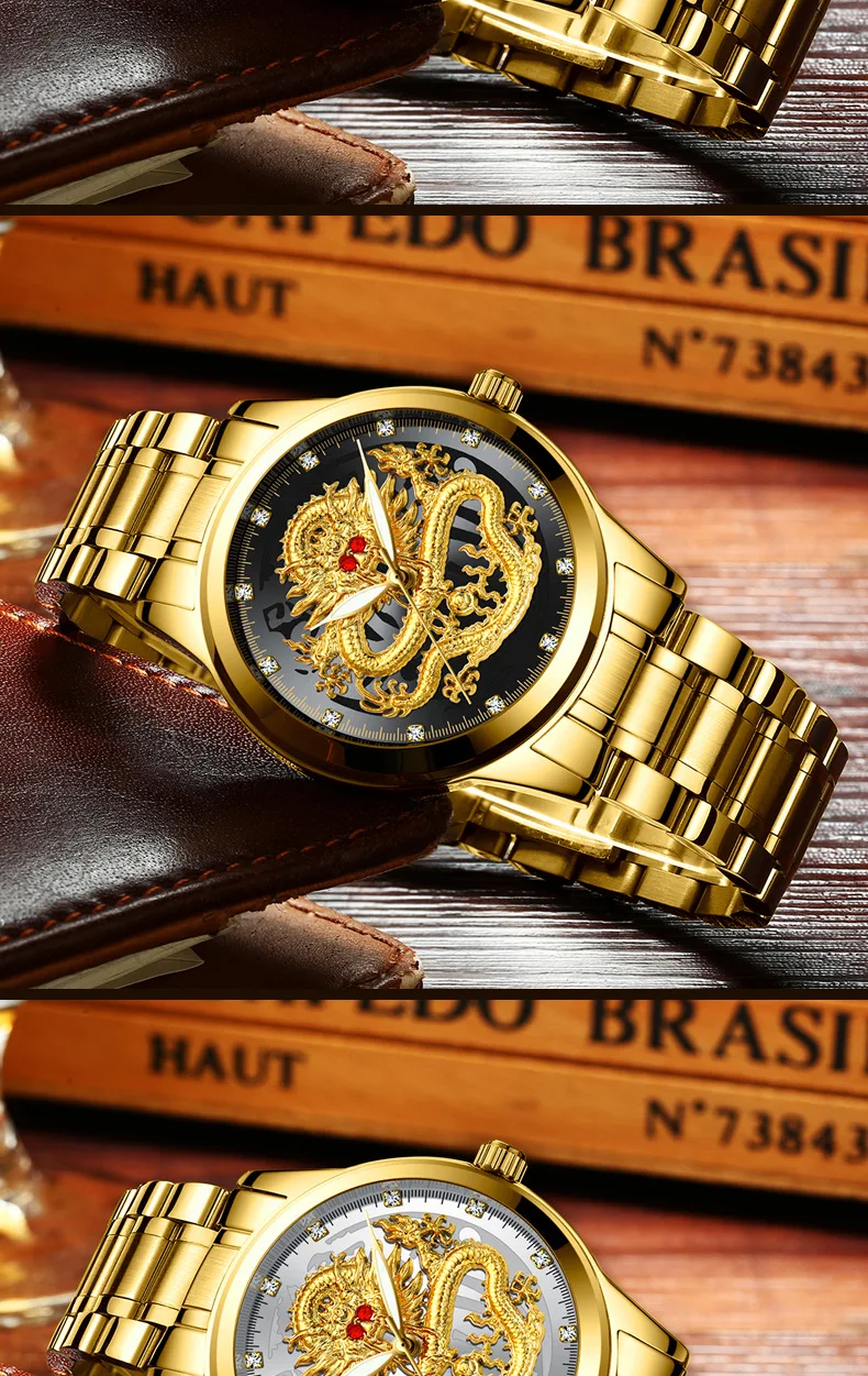 Top Brand Luxury Mens Watches Red Crystal Male Clock Sport Military Stainless Steel Waterproof Quartz Business Men Watch Golden