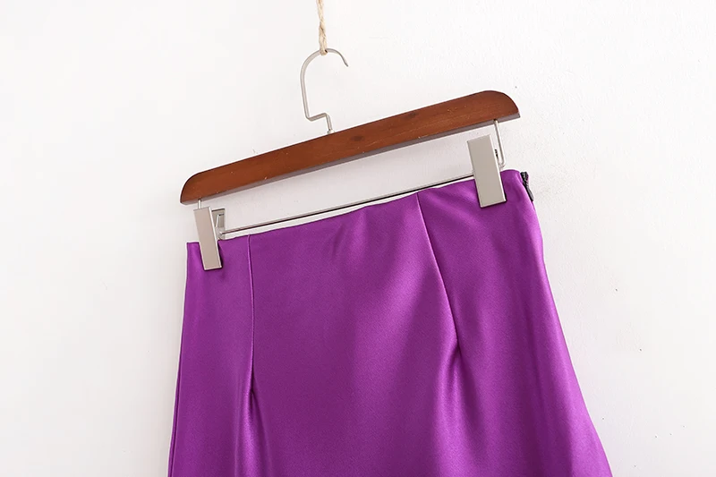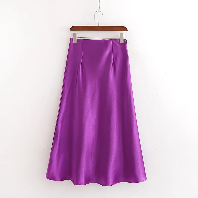 toppies summer purple satin skirts womens a-line midi skirts high waist solid color streetwear