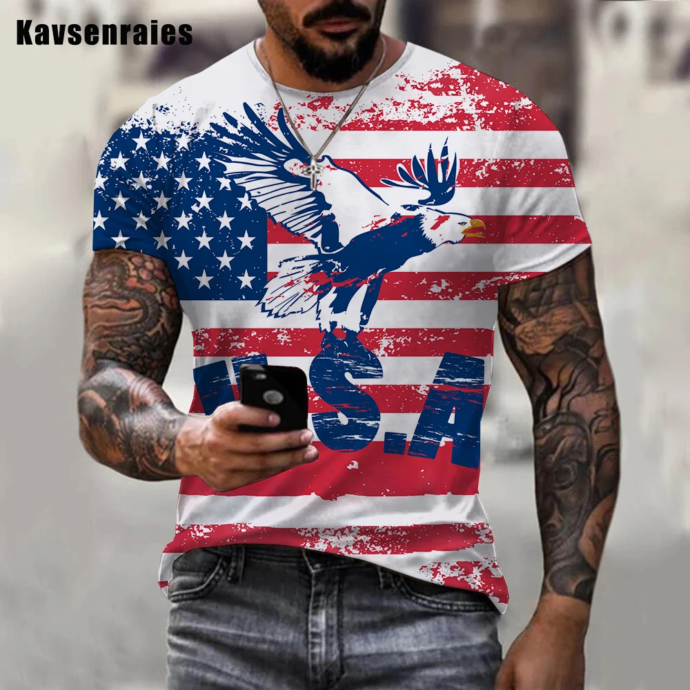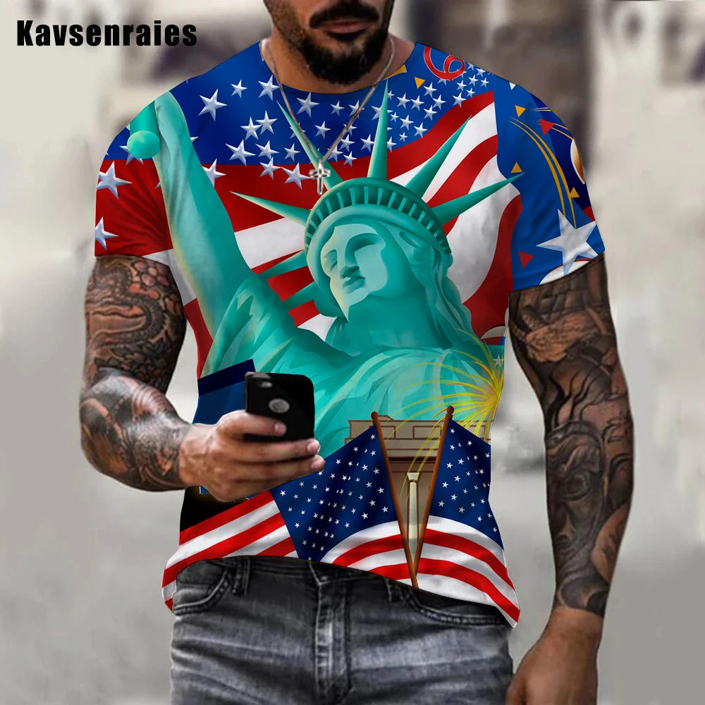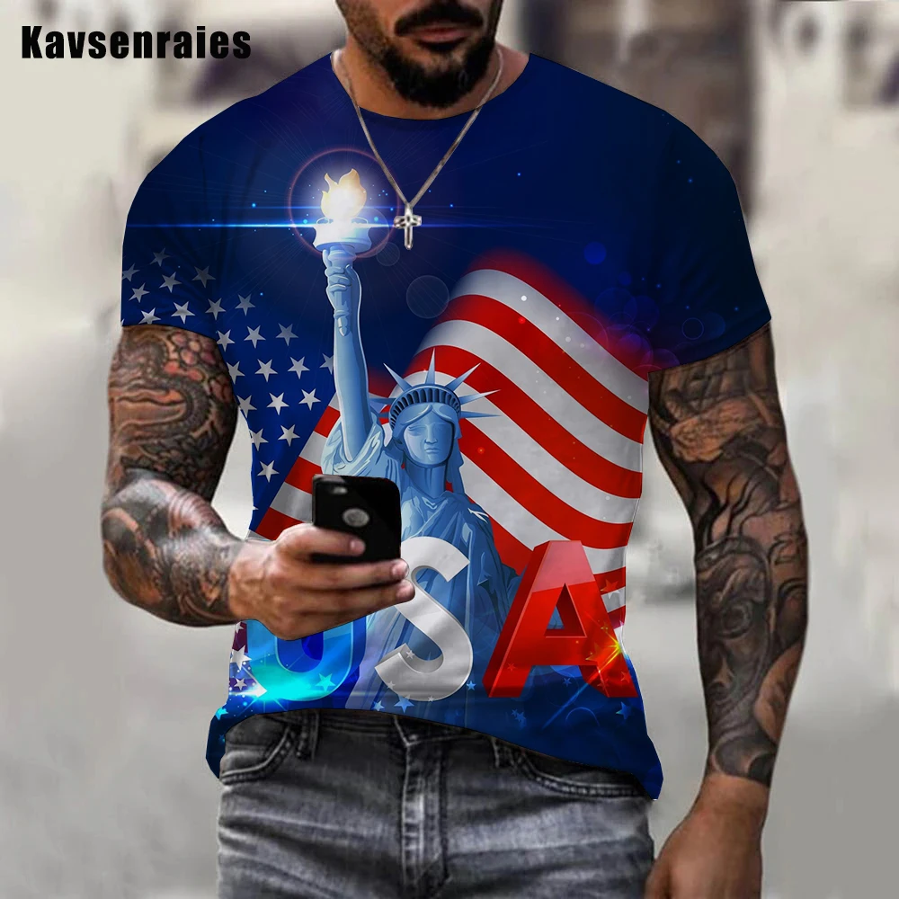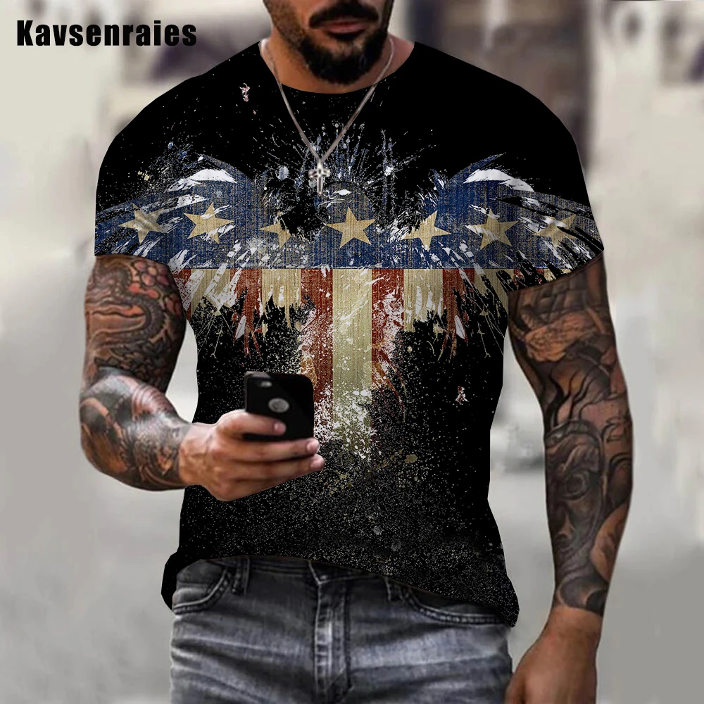 Trendy Cool American Flag Printed 3D Short Sleeve O-Neck T Shirts Casual Men Women Oversized Tees Tops