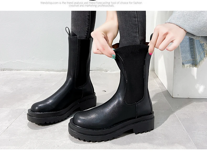 TUINANLE Chunky Boots Women Winter Shoes PU Leather Plush Ankle Boots Black Female Autumn Chelsea Boots Fashion Platform Booties