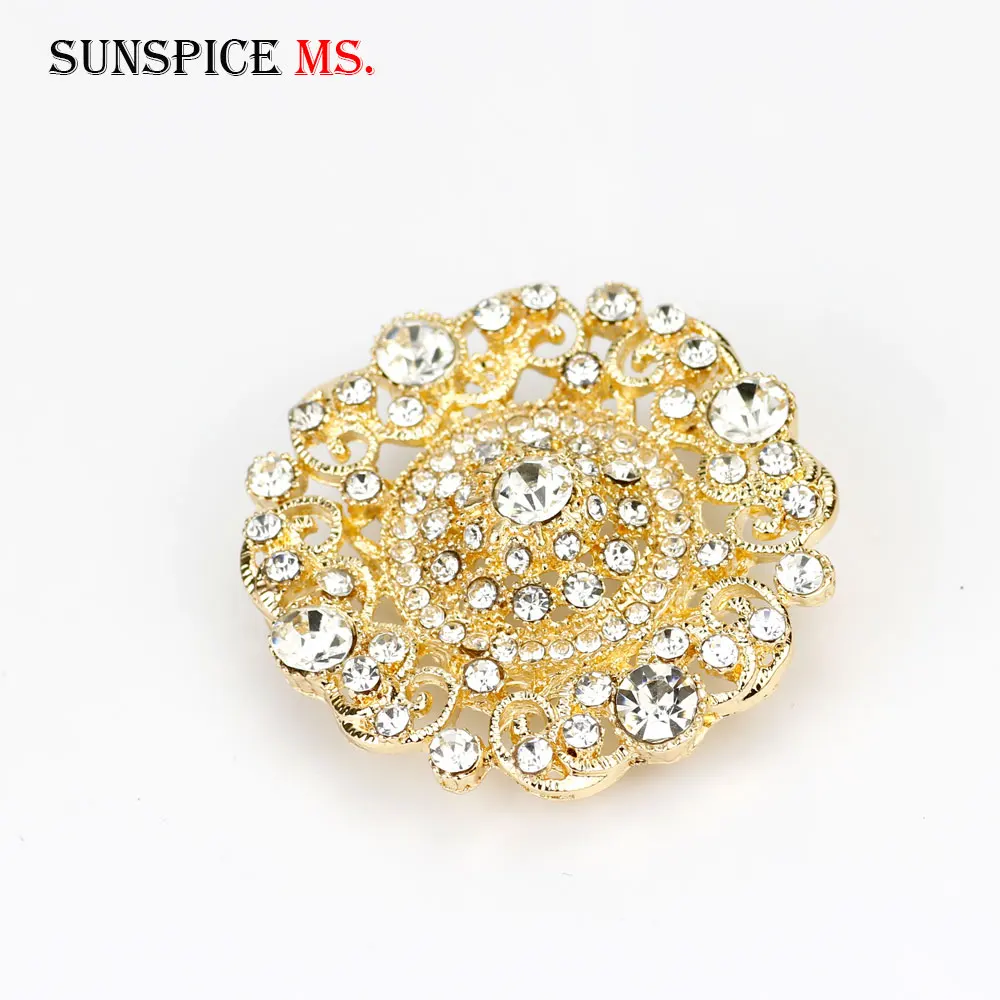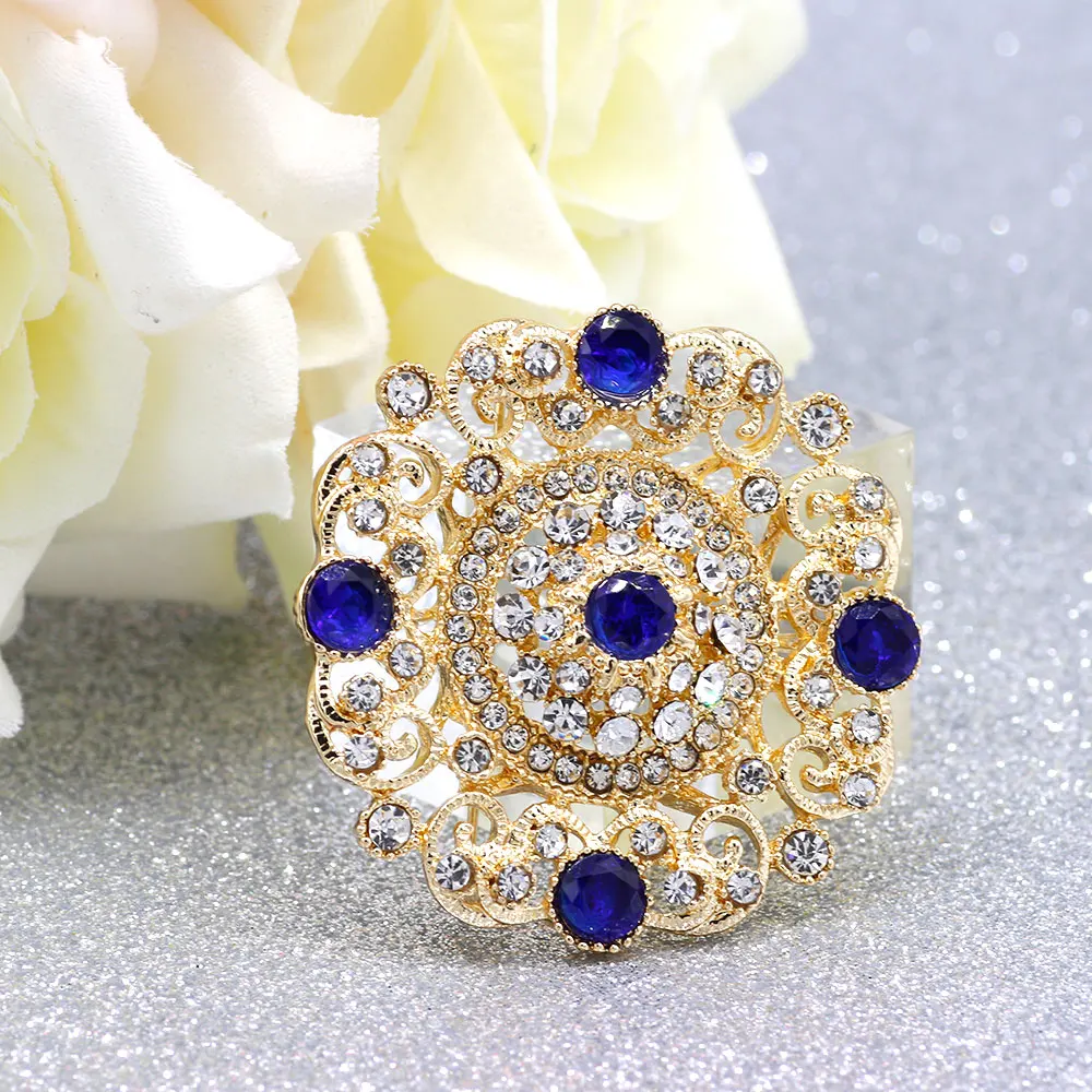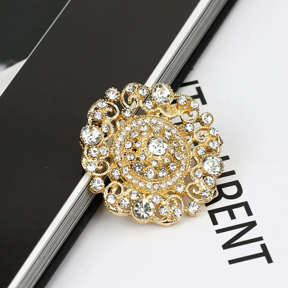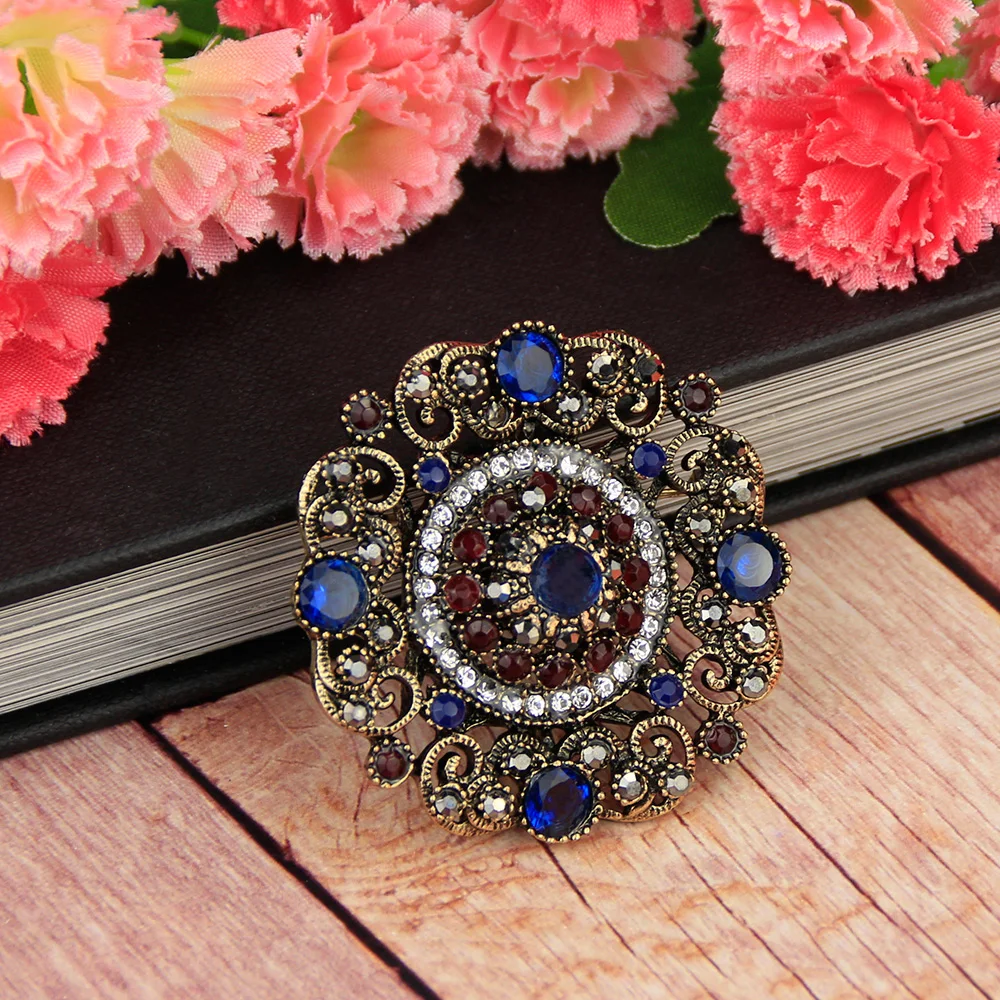 Turkish Brooch Pin For Women Antique Gold Color Vintage Round Resin Flower Arabesque Rhinestone Lapel Scarf Jewelry Gift