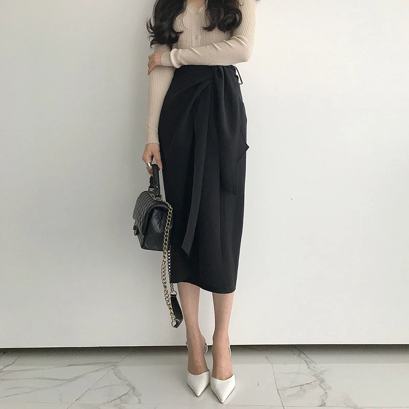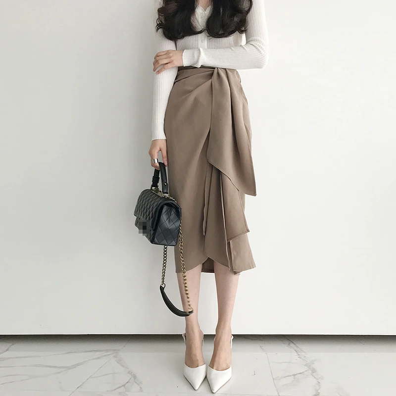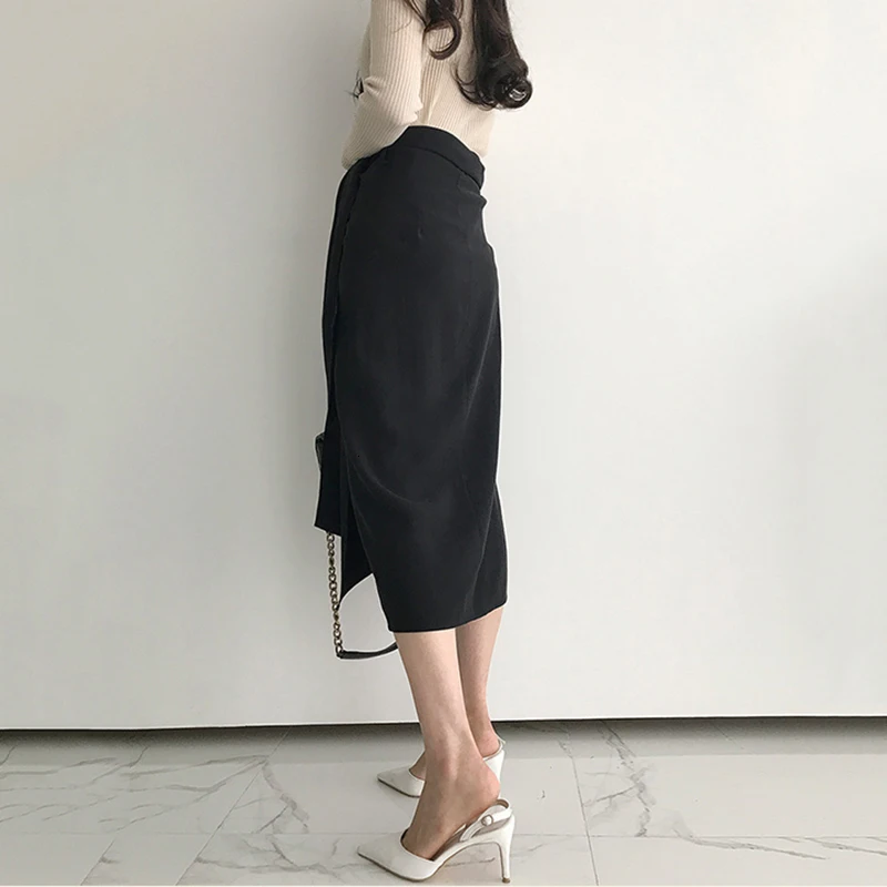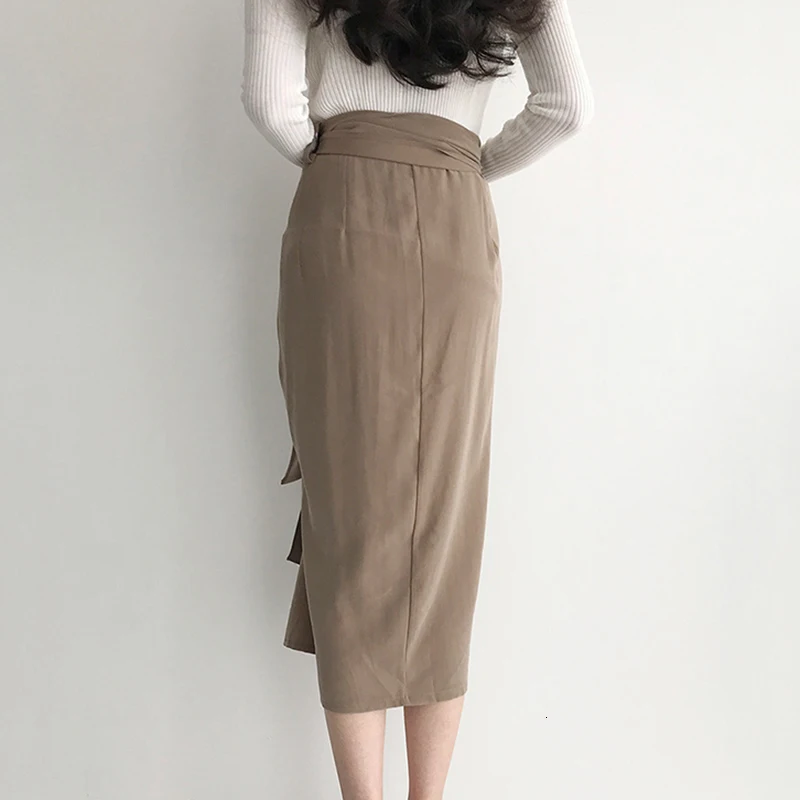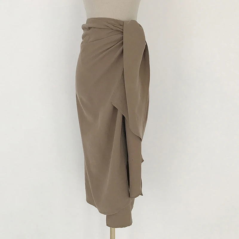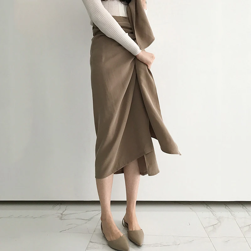 TWOTWINSTYLE Casual Skirt For Women High Waist Bandage Asymmetrical Midi Skirts Female Korean Fashion Elegant 2020 Spring
