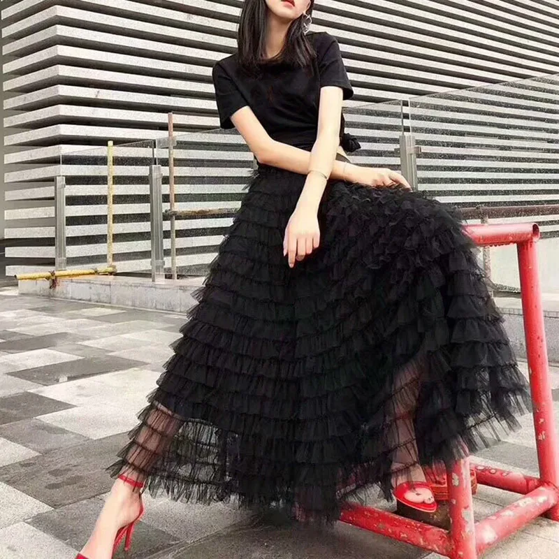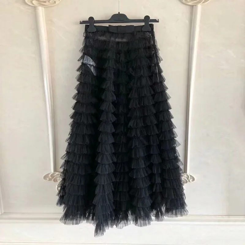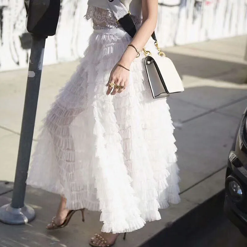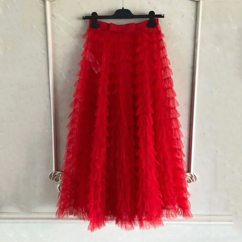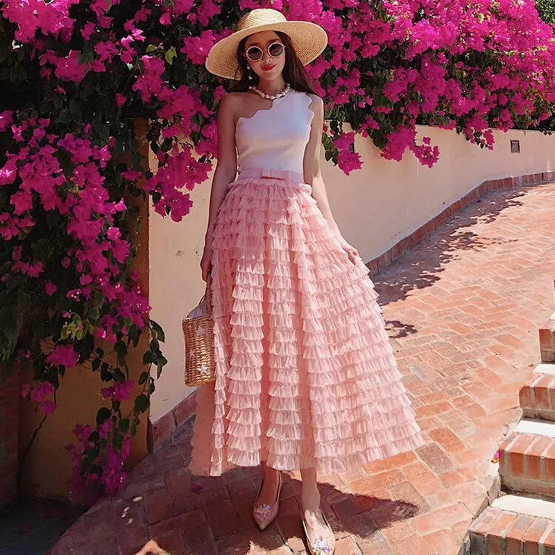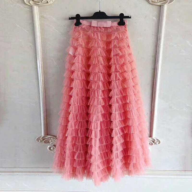 TWOTWINSTYLE Mesh Skirt For Women High Waist Elastic Bow Ruffles Patchwork Summer Maxi Skirts 2020 Female Fashion Sweet Clothing
