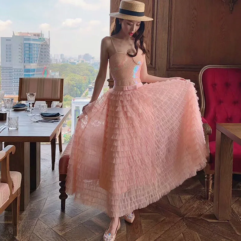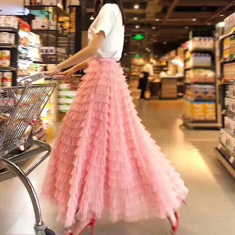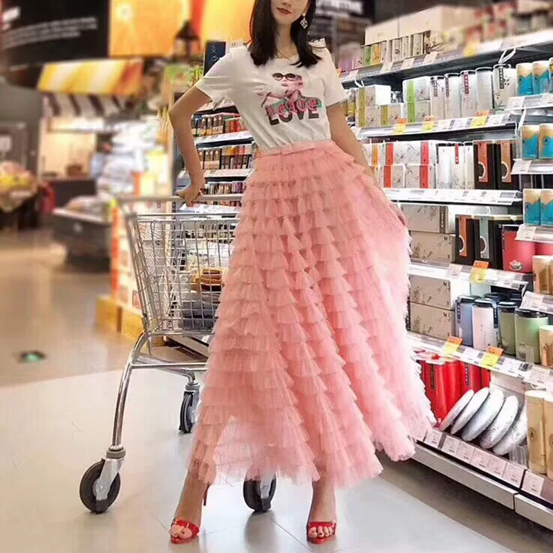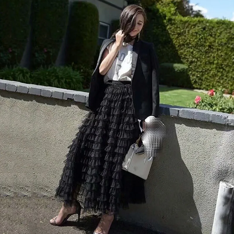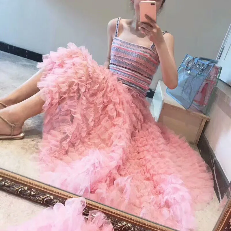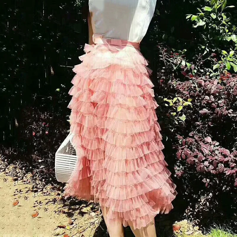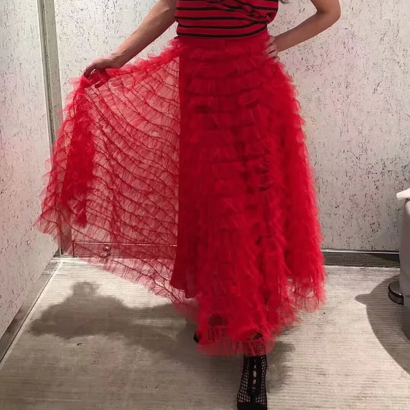 TWOTWINSTYLE Mesh Skirt For Women High Waist Elastic Bow Ruffles Patchwork Summer Maxi Skirts 2020 Female Fashion Sweet Clothing