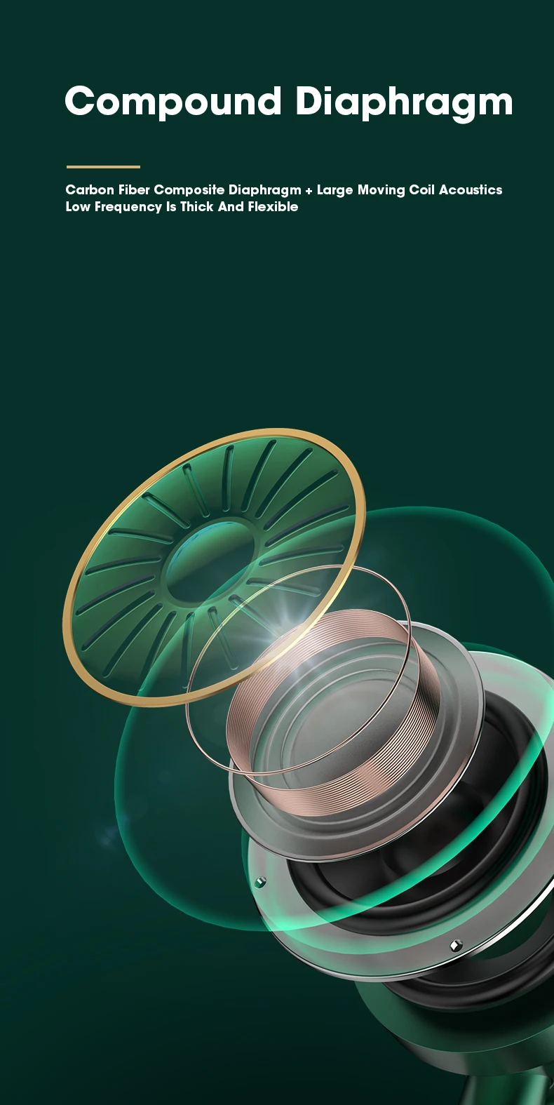 -- Compound Diaphragm: Carbon Fiber Composite Diaphragm + Large Moving Coil Acoustics Low Frequency Is Thick And Flexible.