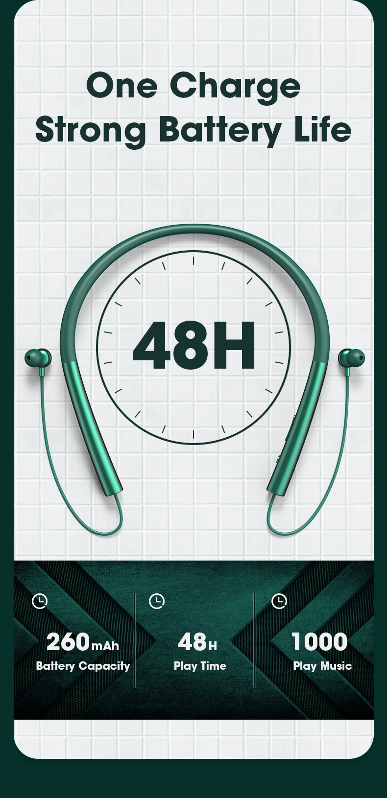 TWS Neck Wireless Bluetooth Earphones 48H Long Life Sports Running Headset Waterproof Sport Earbuds Noise Reduction Headphones