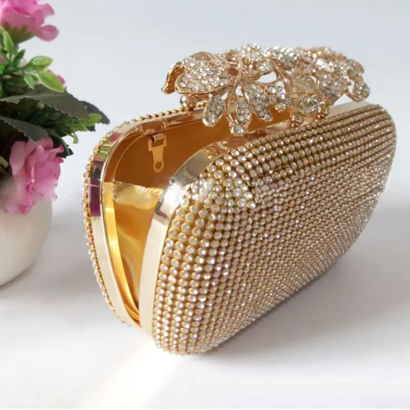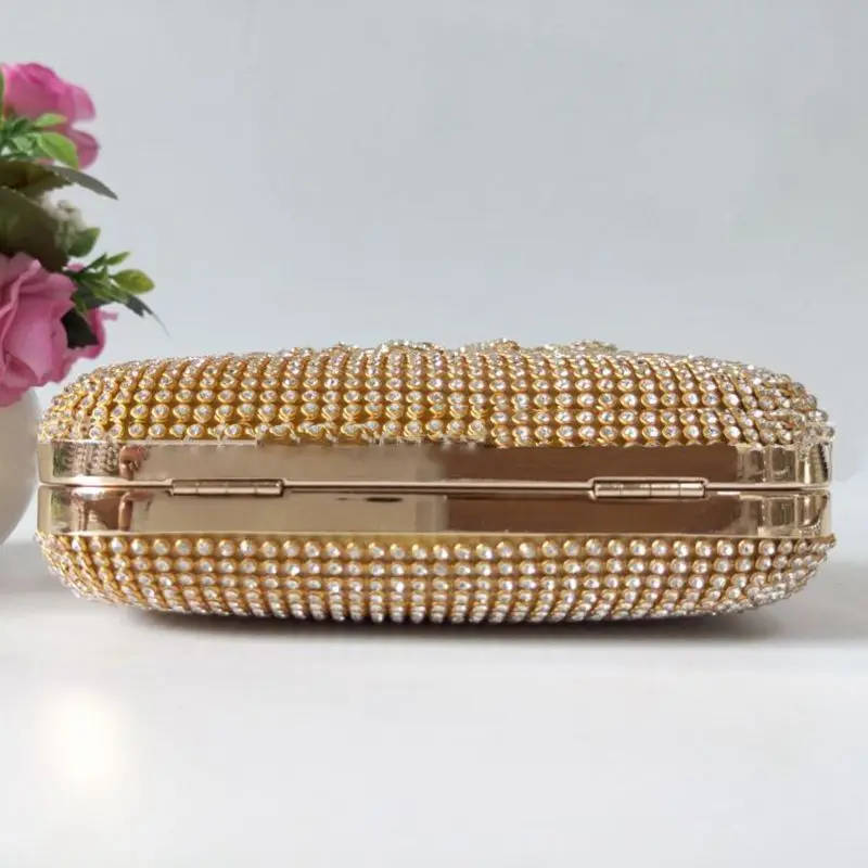 Unique Gold Rhinestone Evening bag Clutch Purse Party Bridal Prom