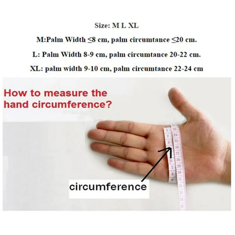 XL:palm width 9-10 cm, palm circumtance 22-24 cm