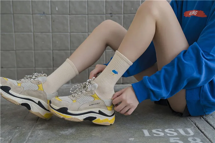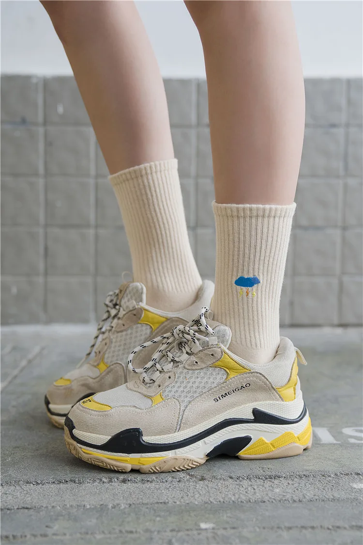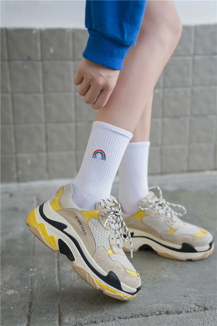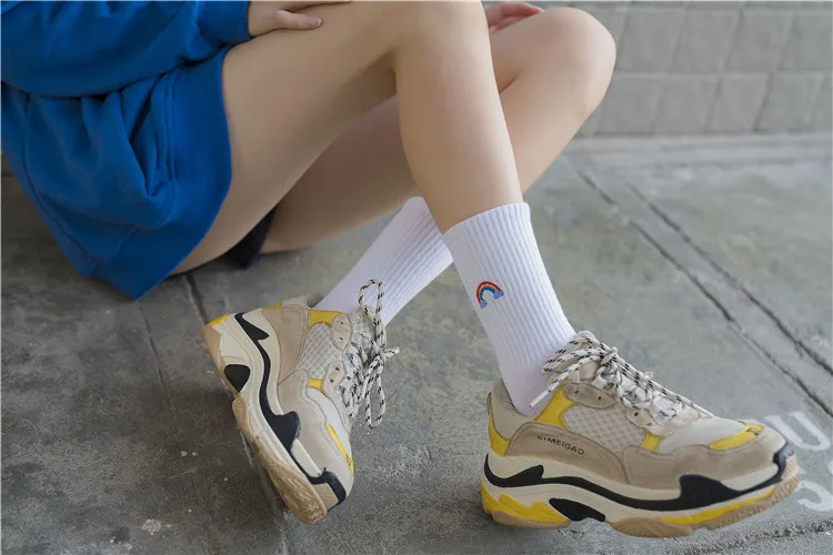 Unisex Rainbow Color Men Socks 100 Cotton Harajuku Weather Forecast Socks Men Standard Length 1 Pair