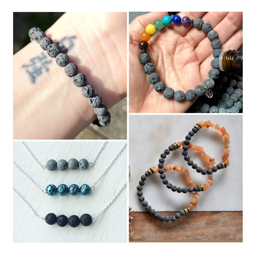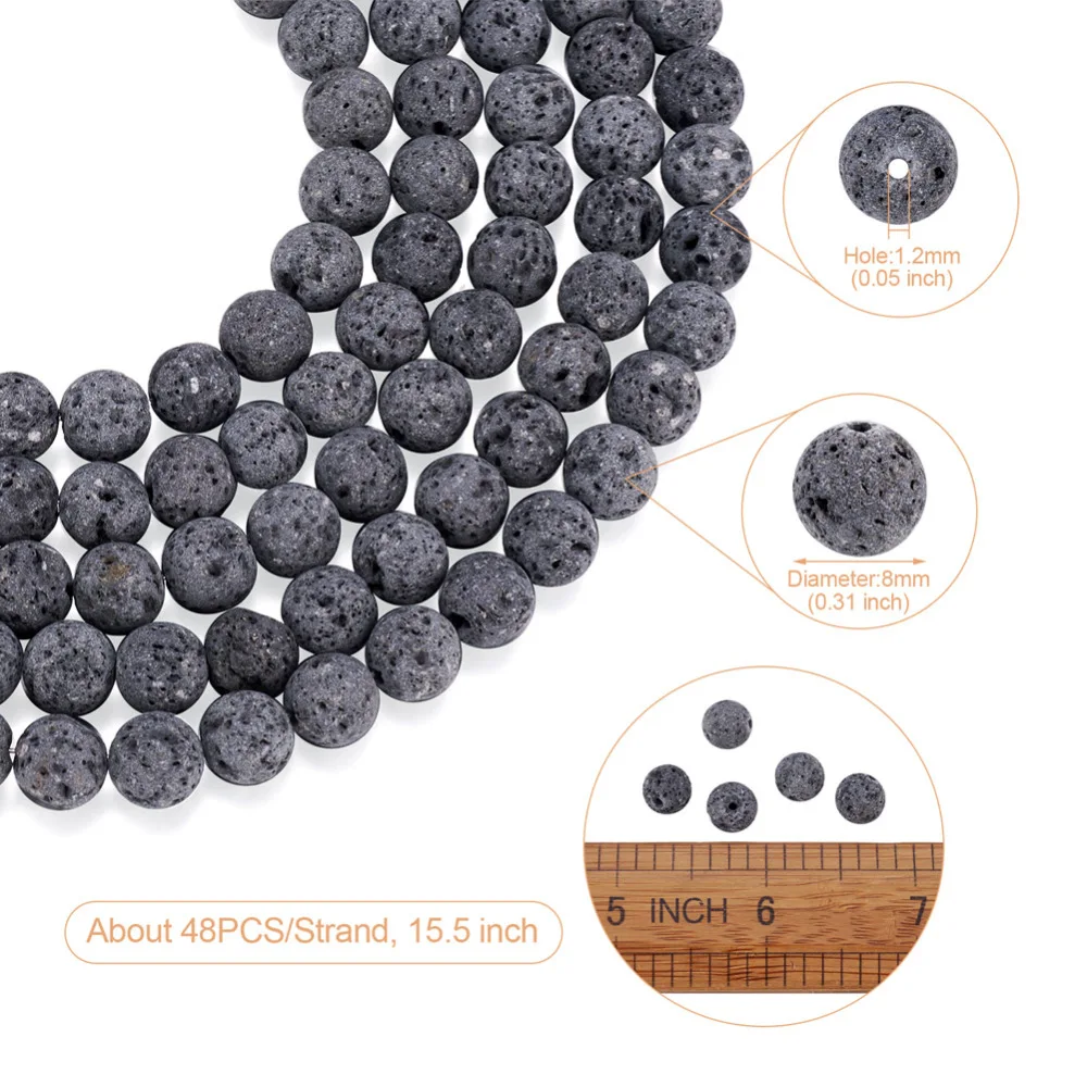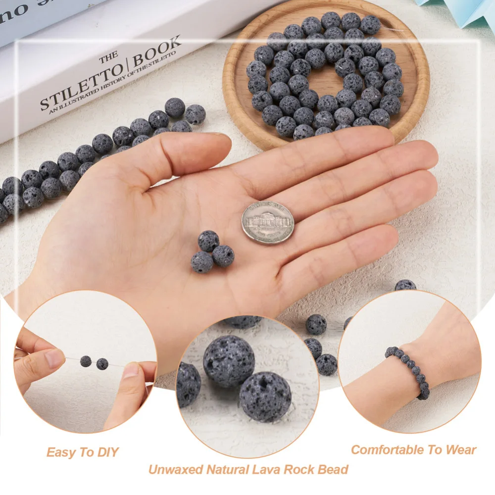 10 Strand 4/6/8/10/12mm Unwaxed Natural Lava Rock Bead Strands Round Loose Stone Beads for Necklace Bracelet DIY Jewelry Making