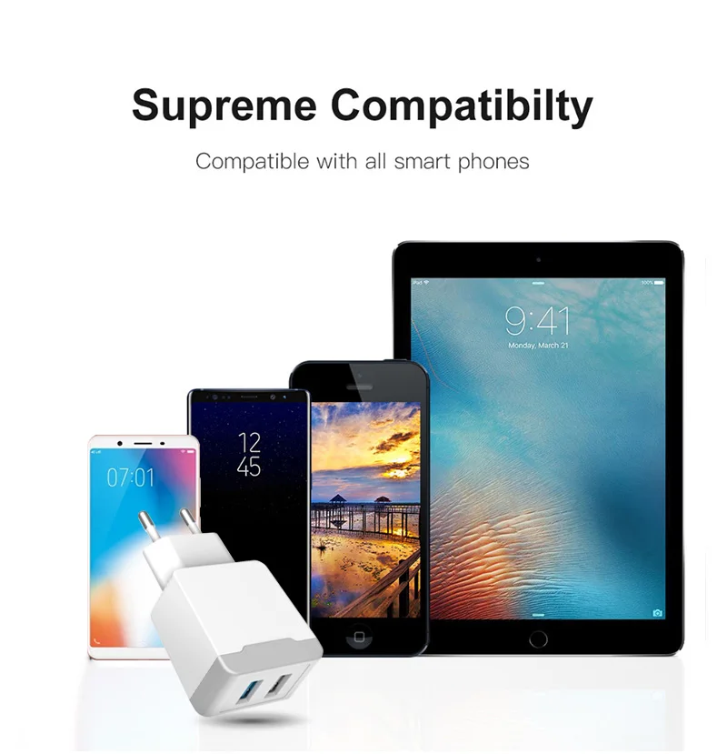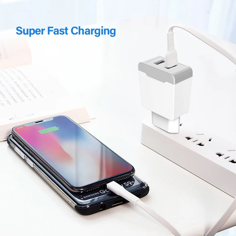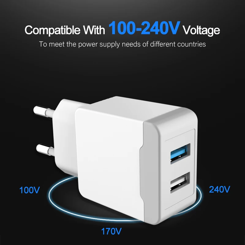 USB Charger 2 Ports Travel EU Plug Adapter Portable Wall Fast Charger Mobile Phone USB Cable For iphone Samsung Xiaomi Universal