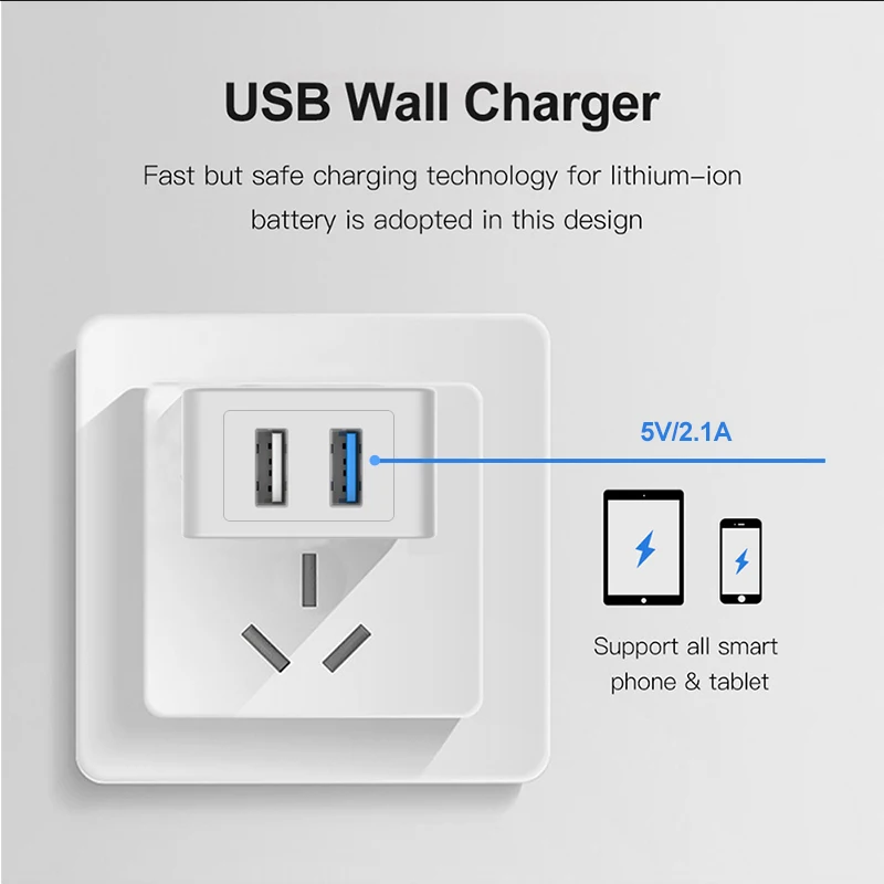 Mini,Portable.The USB wall charger is lightweight and easily portable. Fits in the palm of your hand and perfect for travel.
