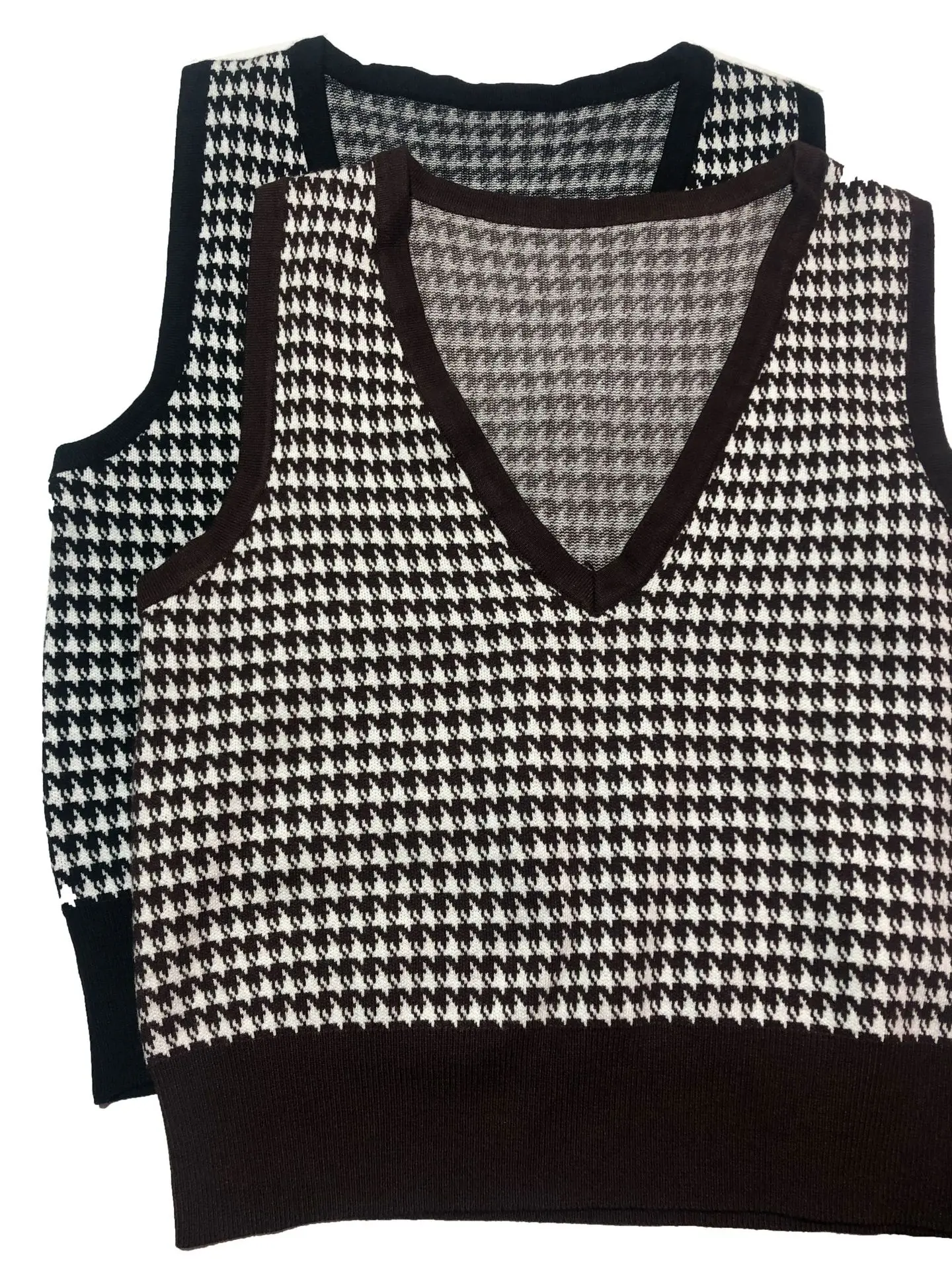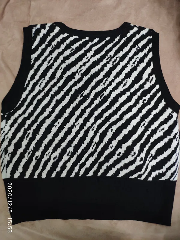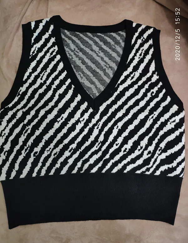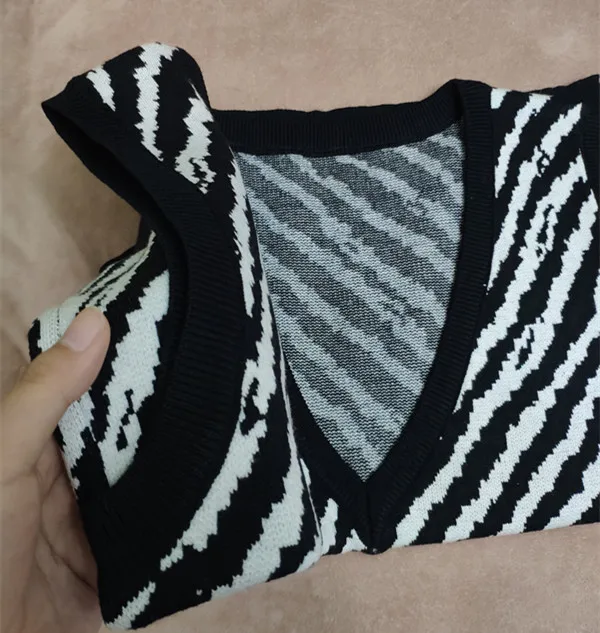 V-neck Knitted Vest for Women 2021 Spring New Korean Fashion Zebra Pattern Sleeveless Sweaters Waistcoat for Outer Wear
