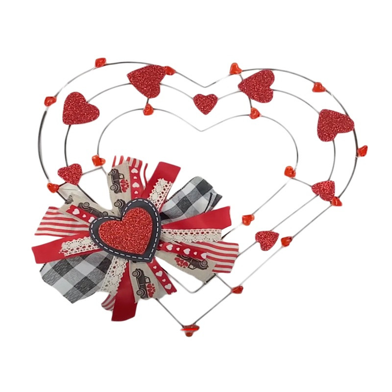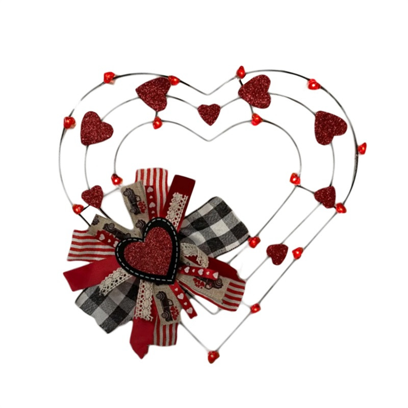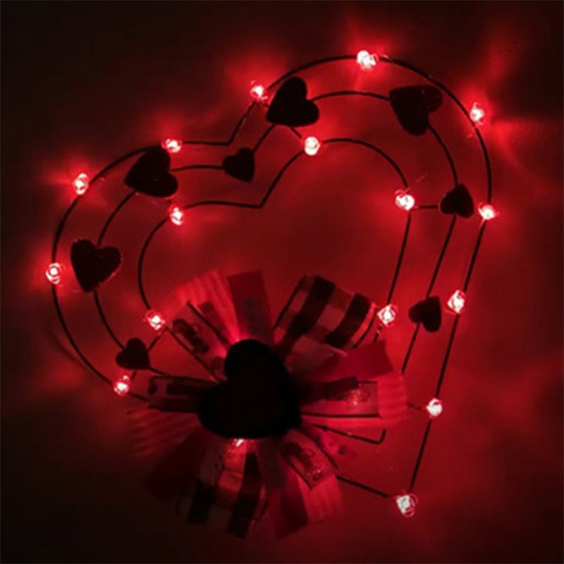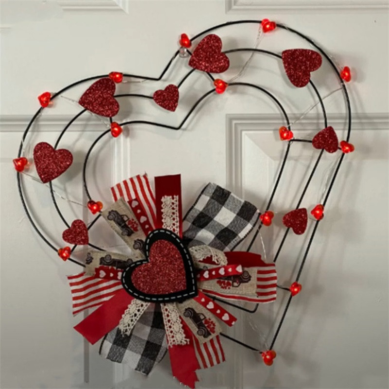 Valentine's Day Wreath Pendant Heart Shape Iron Ring with Led Lights Front Door Home Wedding Festival Party Romantic Decoration