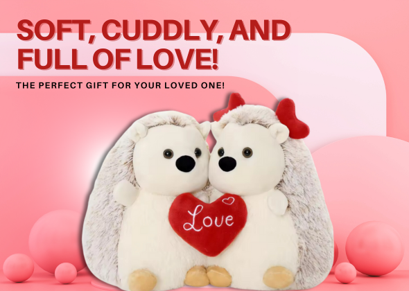 12in Hedgehog Stuffed Animal With Heart Ears, Love You Heart, Valentine Day Plush Gift For Girlfriend, Boyfriend, Kids