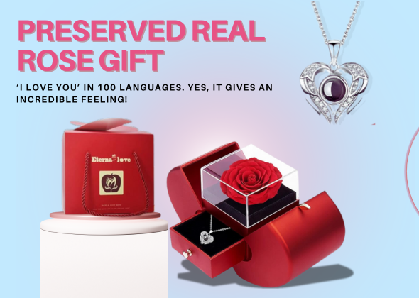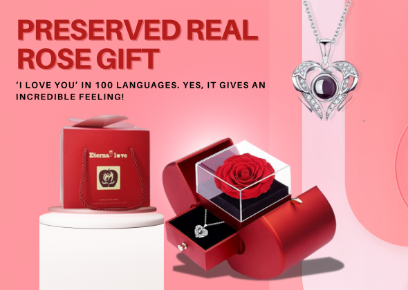 Preserved Real Rose with I love you Necklace 100 Languages, Gifts for Girlfriend, Women, Mom, Wife, Gifts Idea on Christmas, Valentine's Day, Mother's Day, Birthday, Anniversary, Thanksgiving