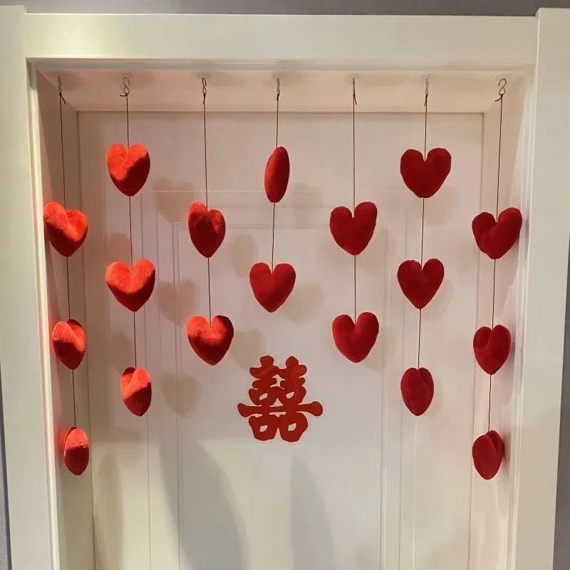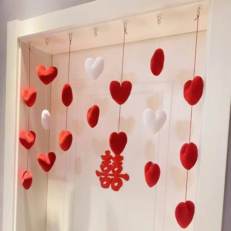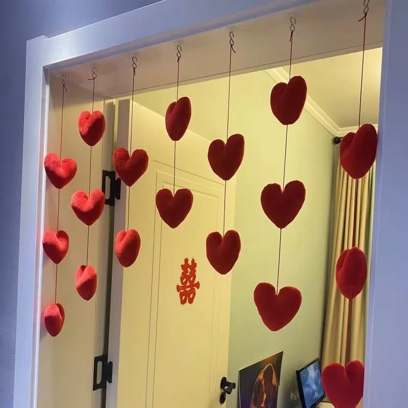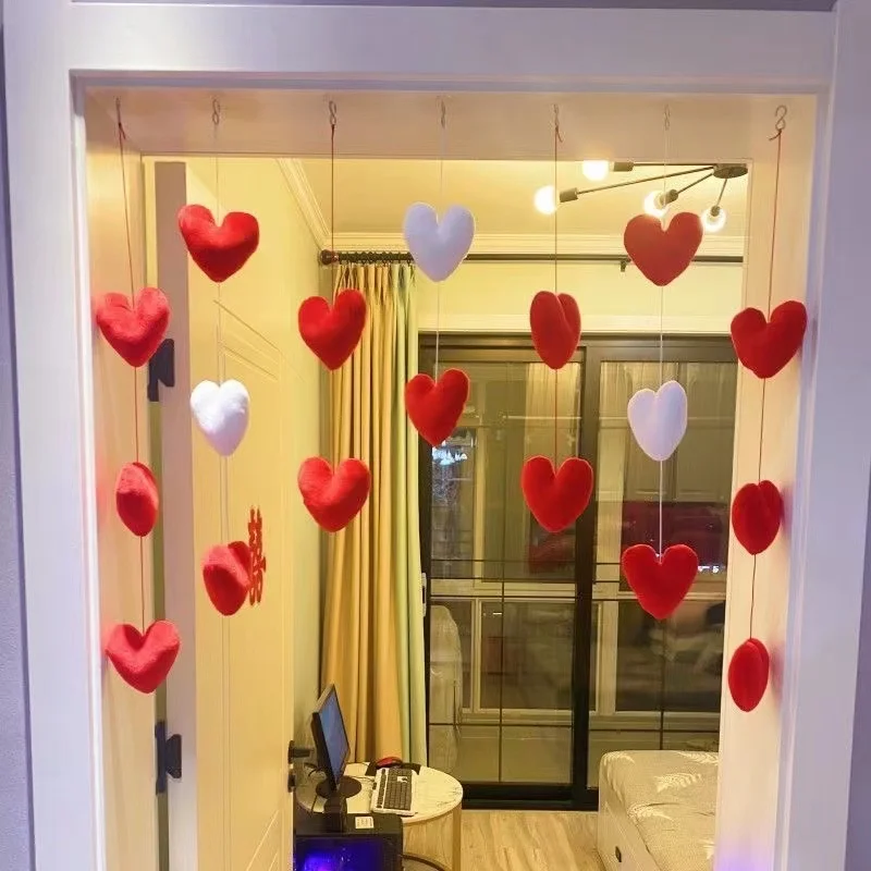 Valentines Day Decoration Large Red Heart Hanging Garland Self-Adhesive Nylon String Door Curtains Wedding Party Supplies