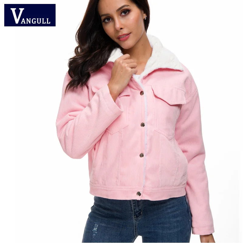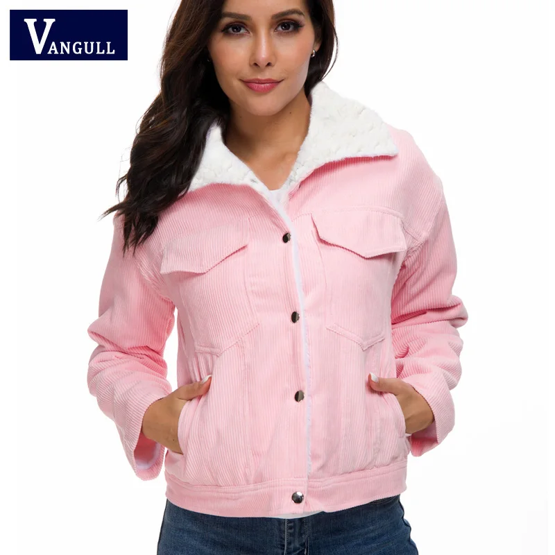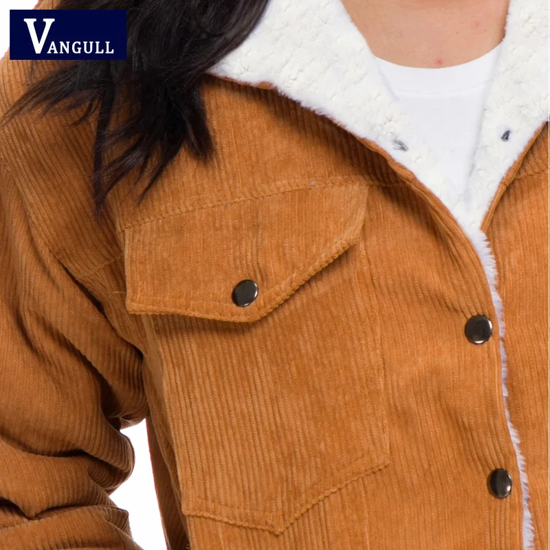 Vangull Winter Lambswool Jackets Women Corduroy Thick Jacket Coat 2020 New Ladies Outerwear Casual Fur Lined Coat Warm Parka