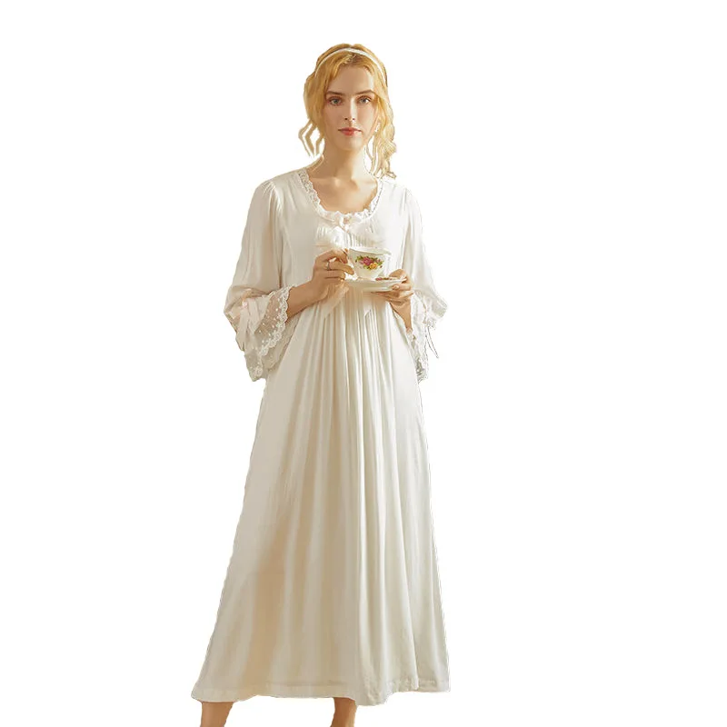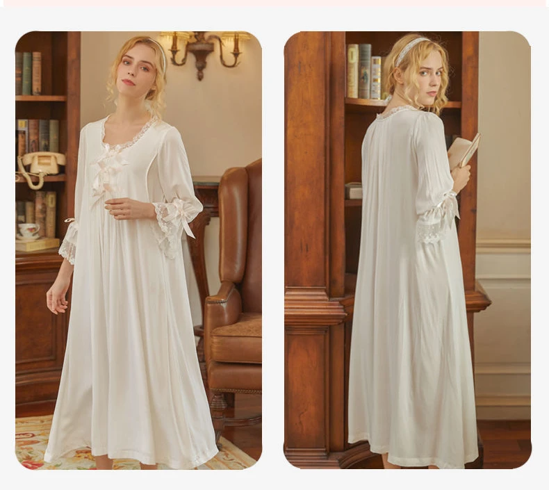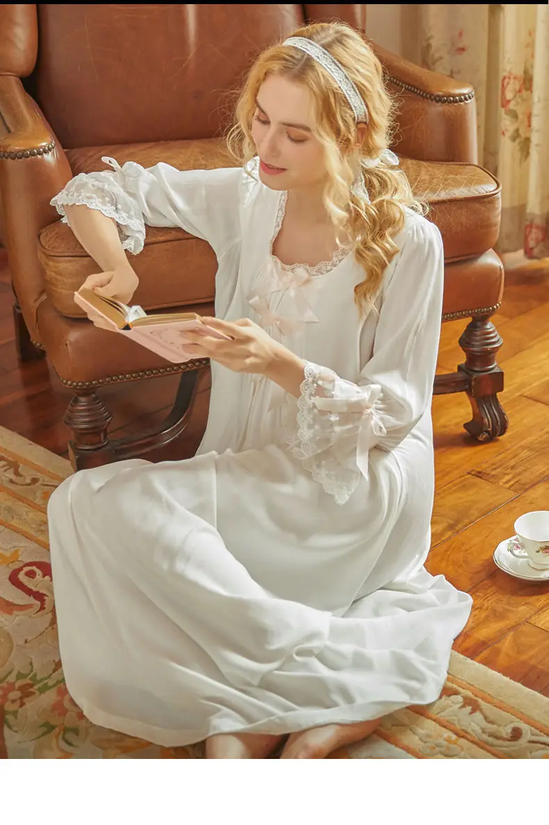Victorian White Night Dress Women Plus Size Nightie Sweet Long Peignoir Robe Vintage Nightgowns Court Style Princess Sleepwear