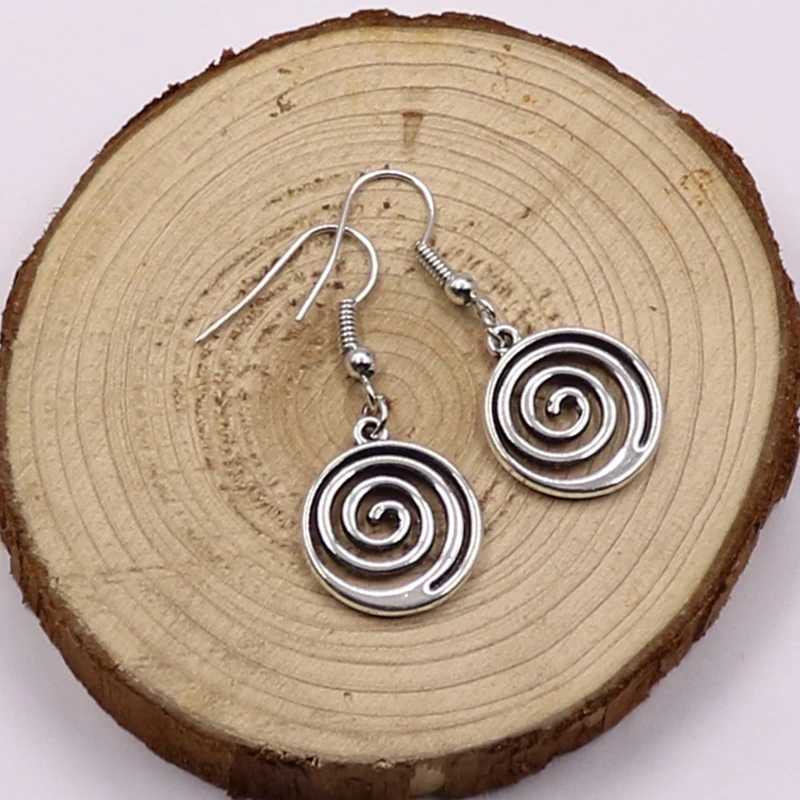 Vintage Antique Silver Spiral earrings Charm Pendant Bohemian Punk Style Silver Drop Earrings Creative Girls Jewelry